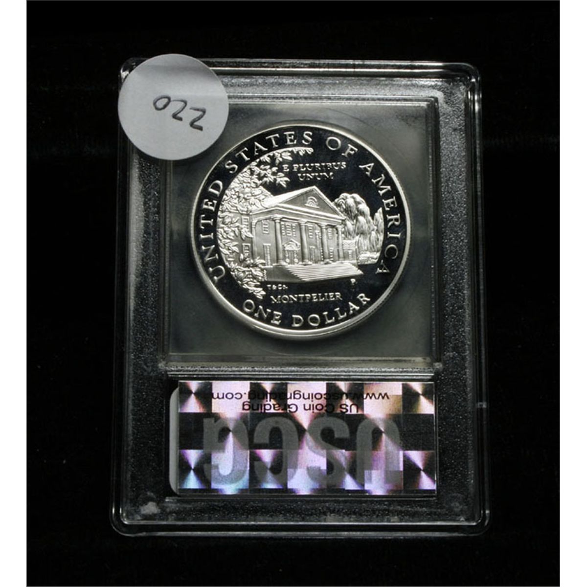 A strikingly beautiful coin. The 1999 Dolley Madison Silver Dollar represents the first time that a First Lady was depicted on a United States coin. Issued to mark the 150th anniversary of her death, this coin is popular with collectors to its beautiful design and unique aspects. This Proof dollar is graded PR70 DCAM by USCG. PCGS lists PR70 as $400. Estimated Value $250.