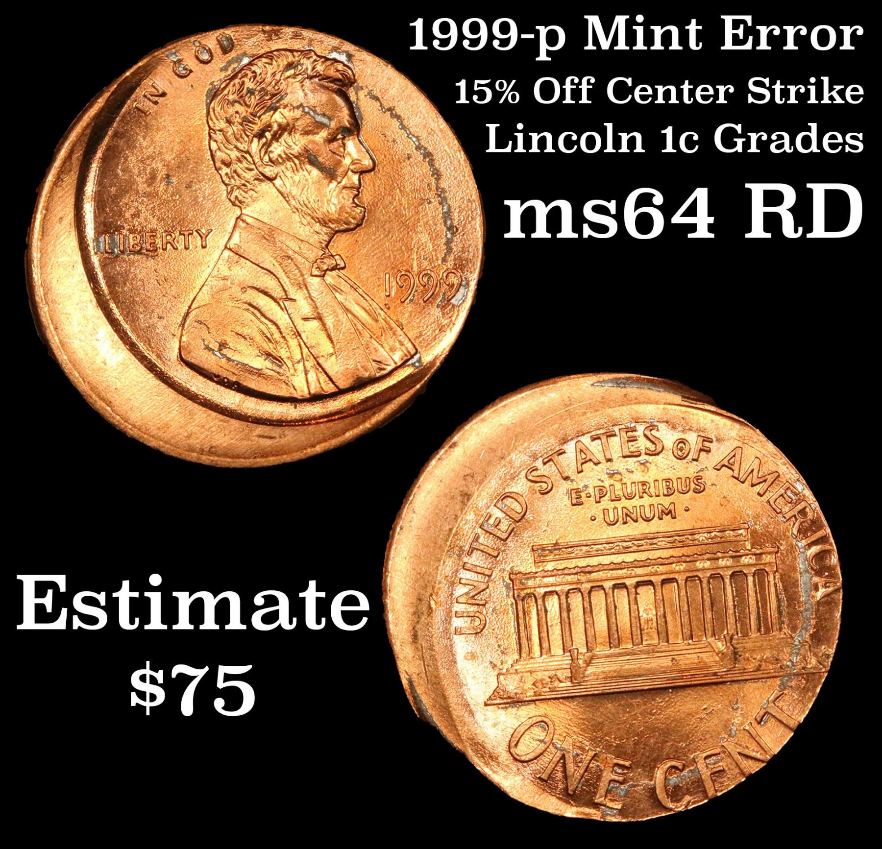 1999-p Mint Error '15% off center strike' Lincoln Cent 1c Grades Choice Unc RD.