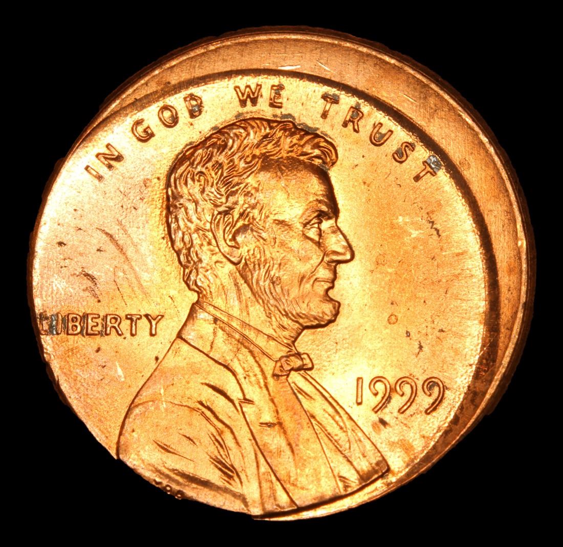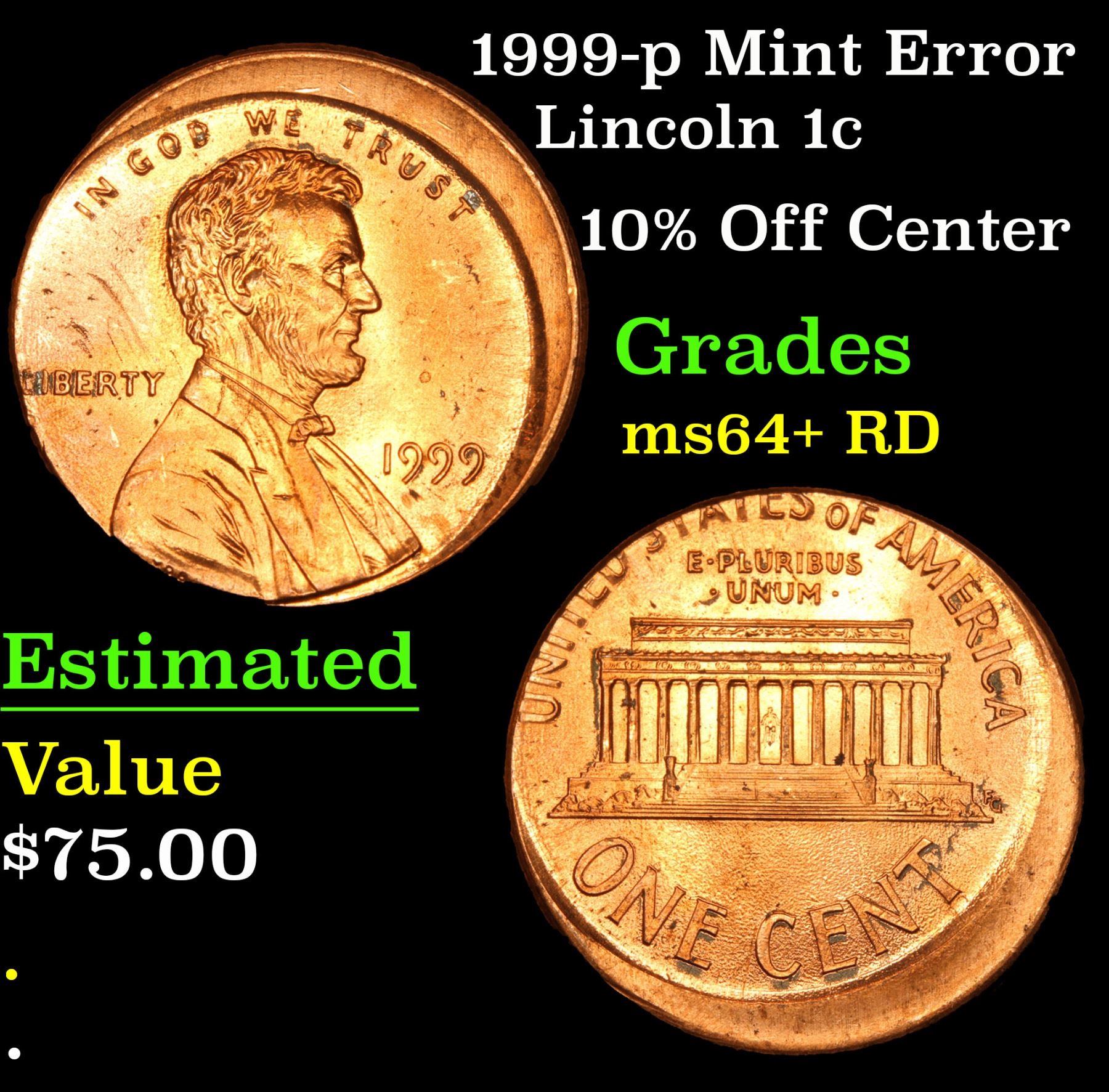 1999-p Mint Error Lincoln Cent 1c Grades Choice+ Unc RD. 10% Off Center