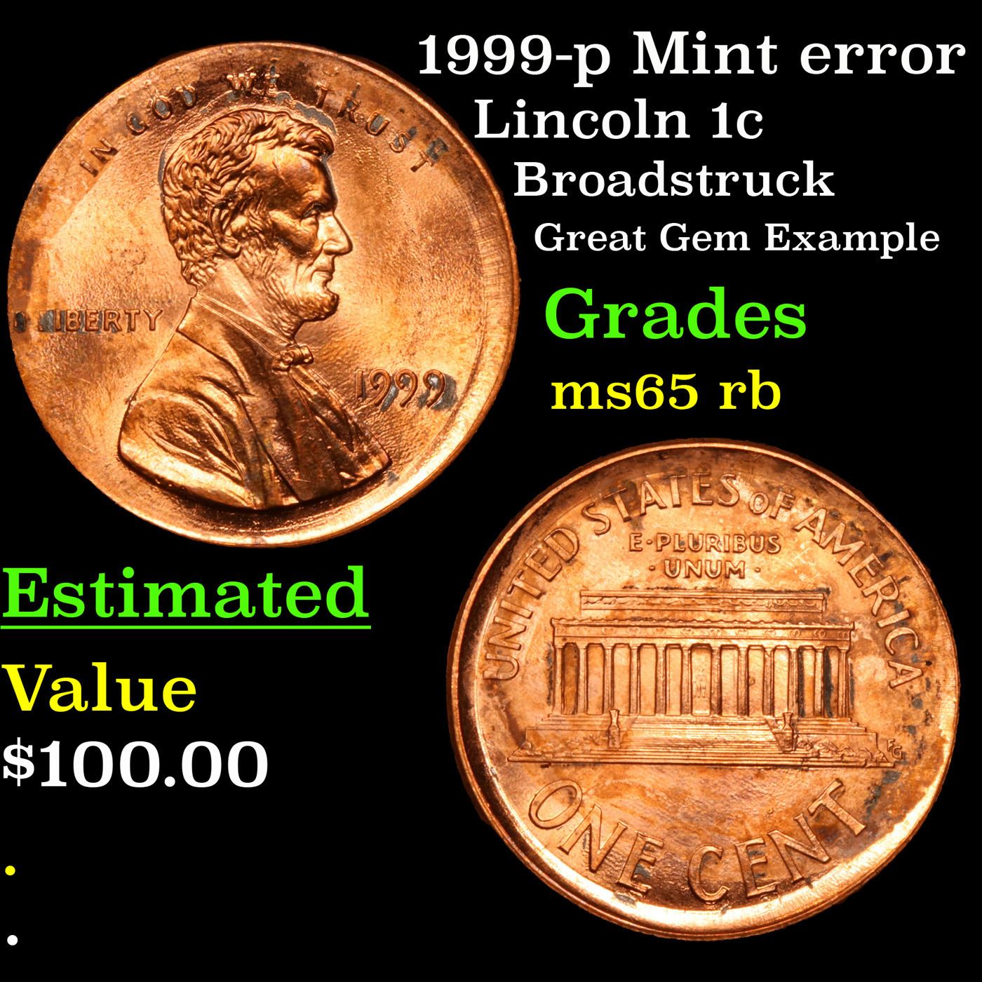 1999-p Mint error Lincoln Cent 1c Grades GEM Unc RB.