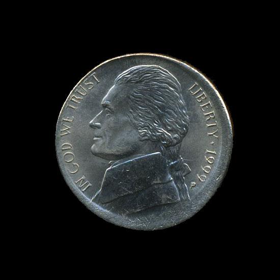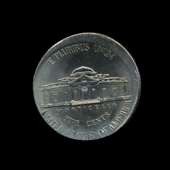 Choice+ MS63/64+ uncirculated, rare high 5c multiple error: 10% off center, strong die clash of Jefferson's profile, potential duplicated P mintmark PLUS STRONG FULL STEPS