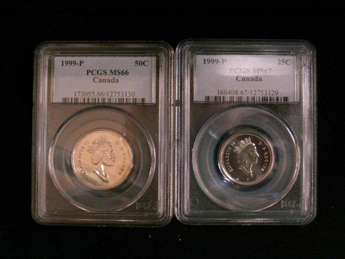 1999P 25¢ PCGS MS67 & 50¢ PCGS MS66. Lot of 2 coins