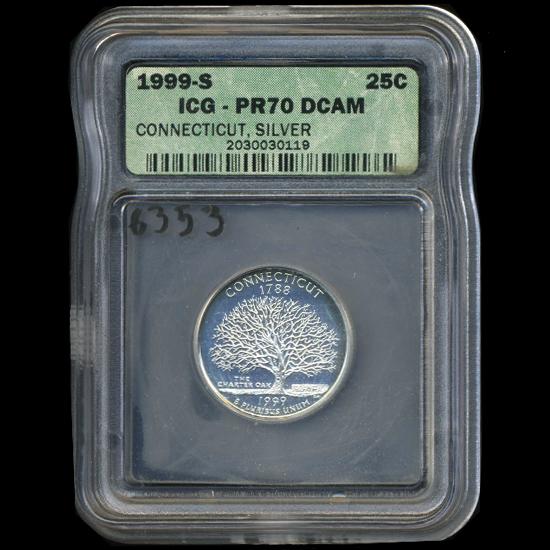 1999S Connecticut Silver 25c Proof Quarter Coin Graded ICG PR70 DCAM (COI-6353)