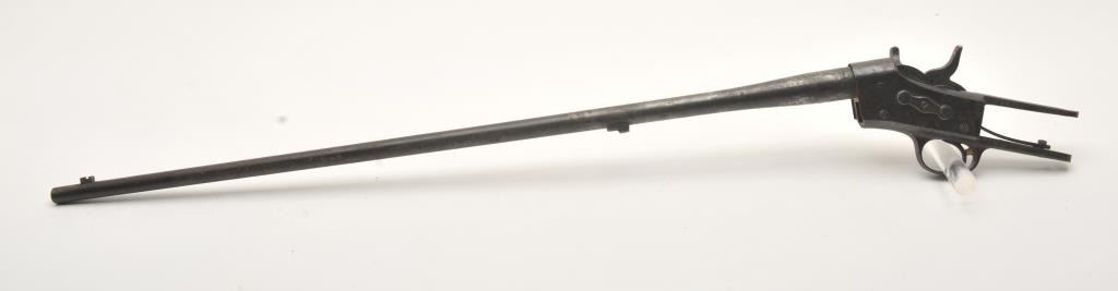 Remington Rolling block barreled action only, 7mm-sm caliber, 30” barrel, Republica Mexicana with snake and eagle on top of receiver; good action, fair bore, dark patina to metal surfaces with areas of pitting and surface rust. (Antique). Est.: $75-$150.