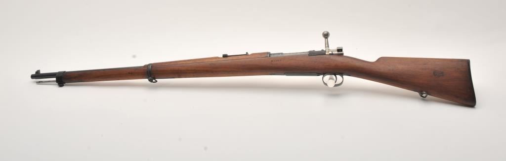 Chilean Mauser Model 1895 bolt action rifle, 29.5” barrel, blued finish, wood stock, S/N B1122; overall good to very good condition with majority of blued finish remaining, very good bore, crisp action, good markings and overall good wood stock. (C&R). Est.: $200-$400.