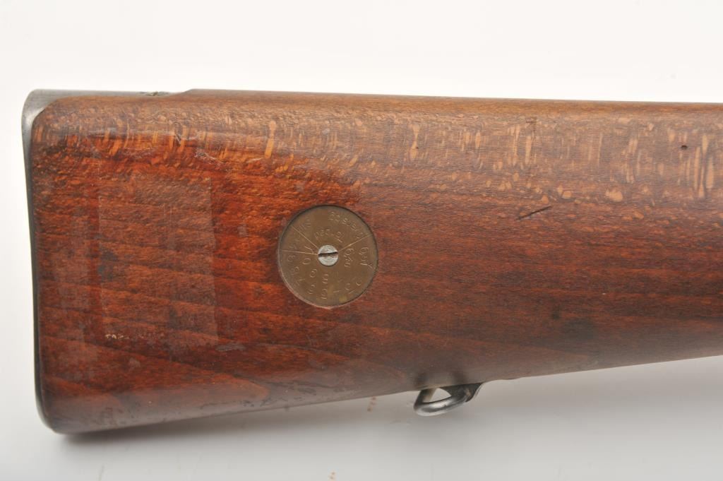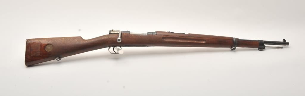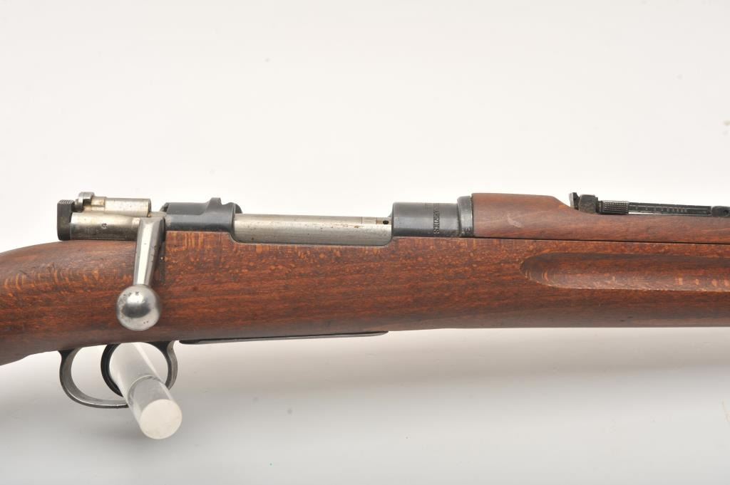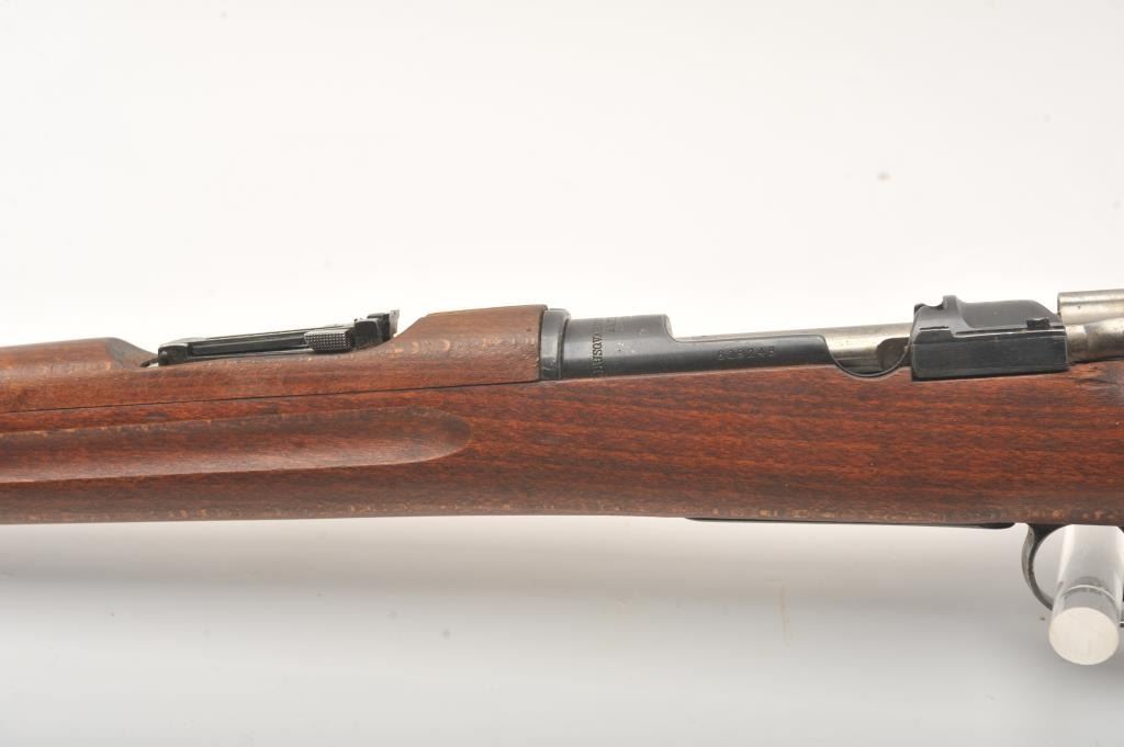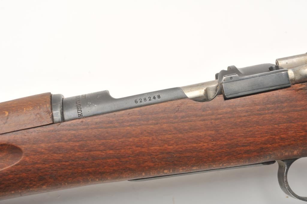 Husqvarna bolt action rifle dated 1941, import-marked, 6.5mm caliber, 24” barrel, military blued finish, wood stock, S/N 628248; overall good + condition with a good + bore, crisp action, good markings and stock. (C&R). Est.: $250-$500.
