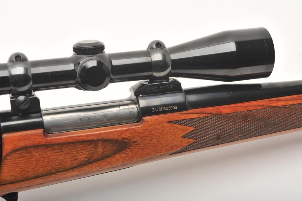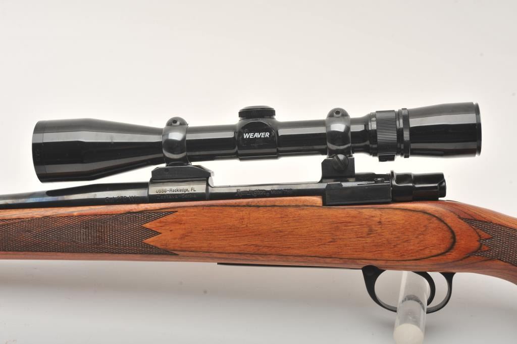 Remington Model 798 bolt action rifle, .270 Win. caliber, 22.5” barrel, blued finish, checkered wood stock, S/N ZA700603599, mounted with a Weaver scope displaying clear optics; overall fine condition with a fine bore, crisp action, sharp markings and fine stock. (C&R). Est.: $250-$500.