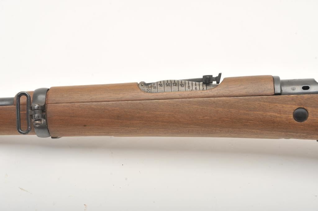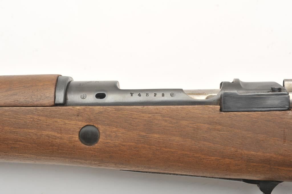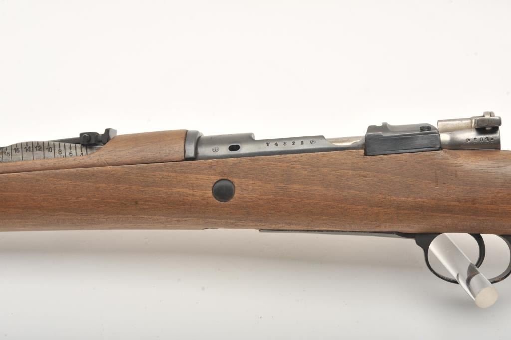 Fabrica De Armas Oviedo Spanish bolt action Mauser, 7mm caliber, 22” barrel, blued finish, wood stock, S/N Y4823; overall very good to fine condition with a very good bore, crisp action, sharp markings and near fine stock. (C&R). Est.: $150-$300.