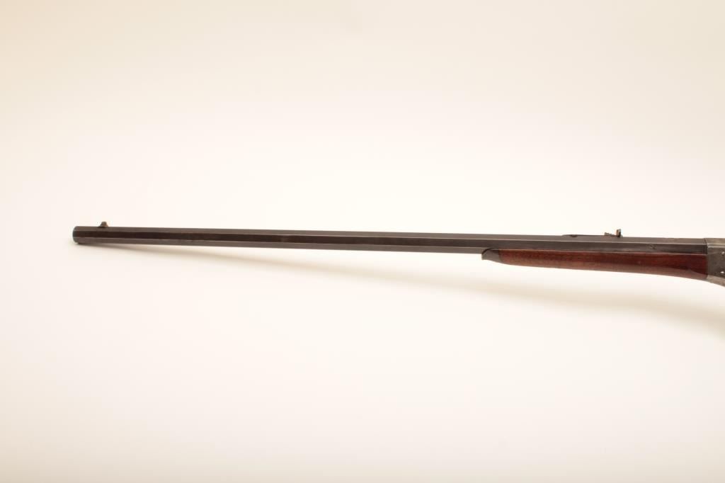 Remington rolling block Sporting single shot rifle, .40 caliber, 3 ¼”, 34” octagon barrel, blued and case hardened finish, wood stocks, S/N 11784; overall very good + condition showing majority of muted original finish to barrel and traces of original case colors on receiver; very good + bore, crisp action, good markings and overall good to very good wood stocks. (Antique). Est.: $1,400-$2,800.