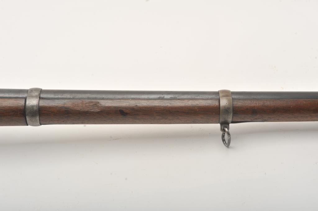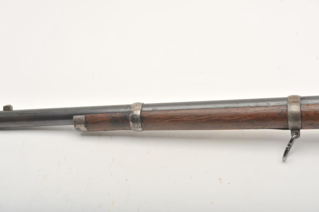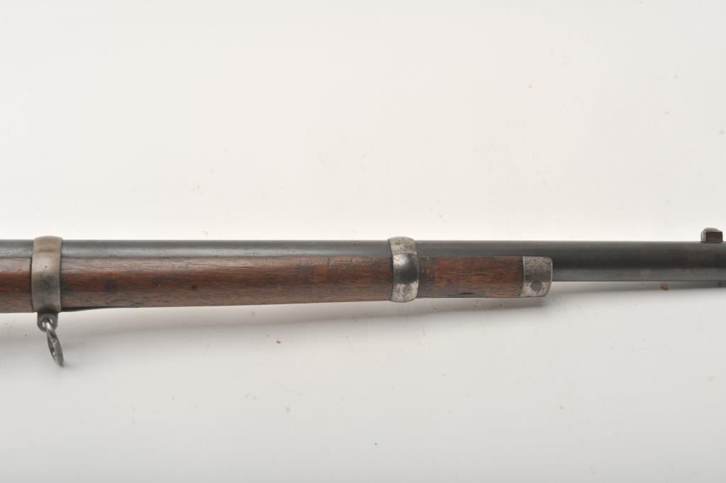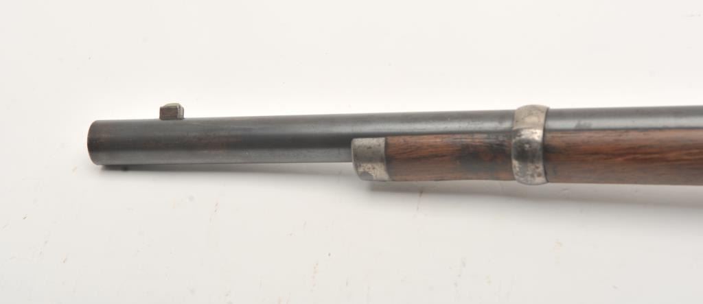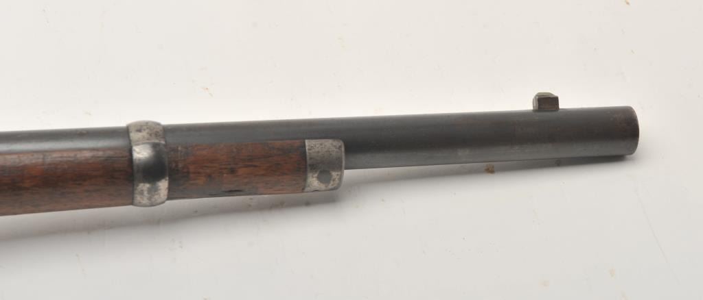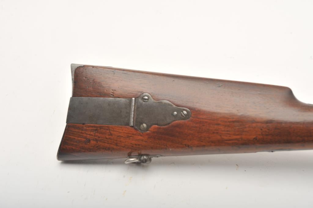 Sharps New Model 1865 percussion military rifle, .52 caliber, 30” barrel, blued and case hardened finish, wood stocks with iron patchbox, S/N C,30269; majority of original blued finish on barrel, traces of case colors on lockplate, crisp action, fine bore, good wood stocks with four inspector’s cartouches on left side of butt stock. (Antique). Est.: $1,500-$3,000.