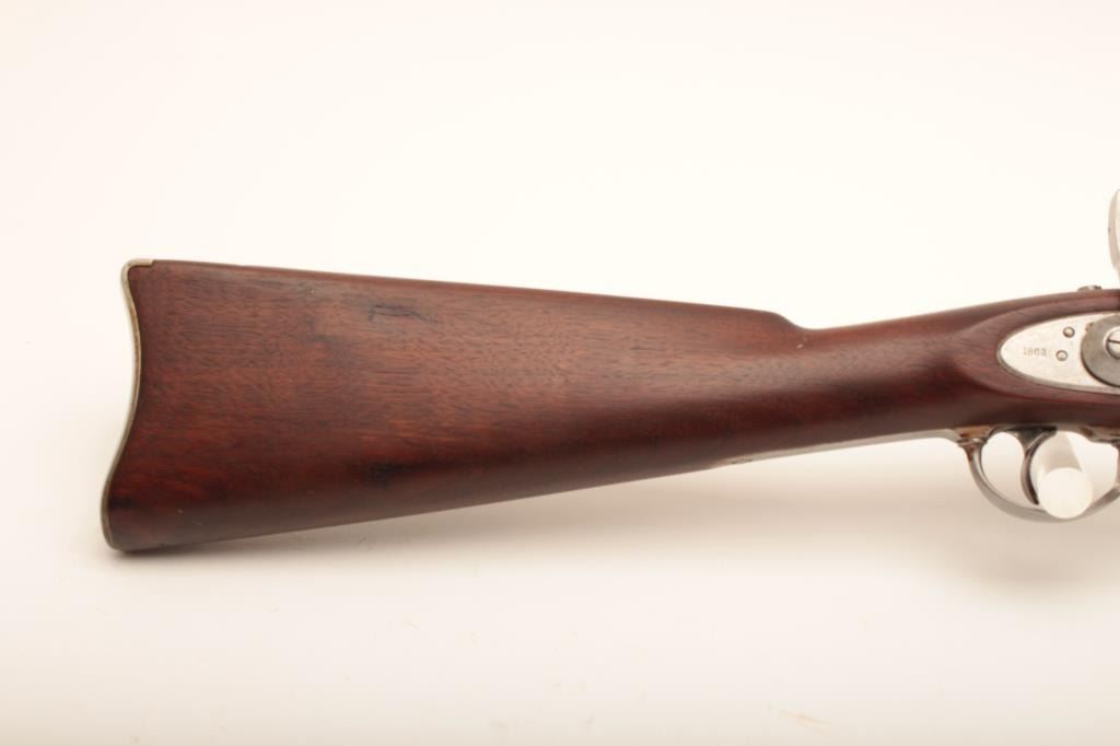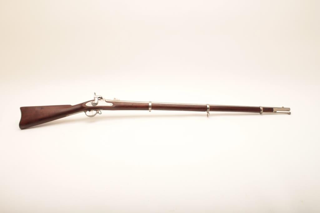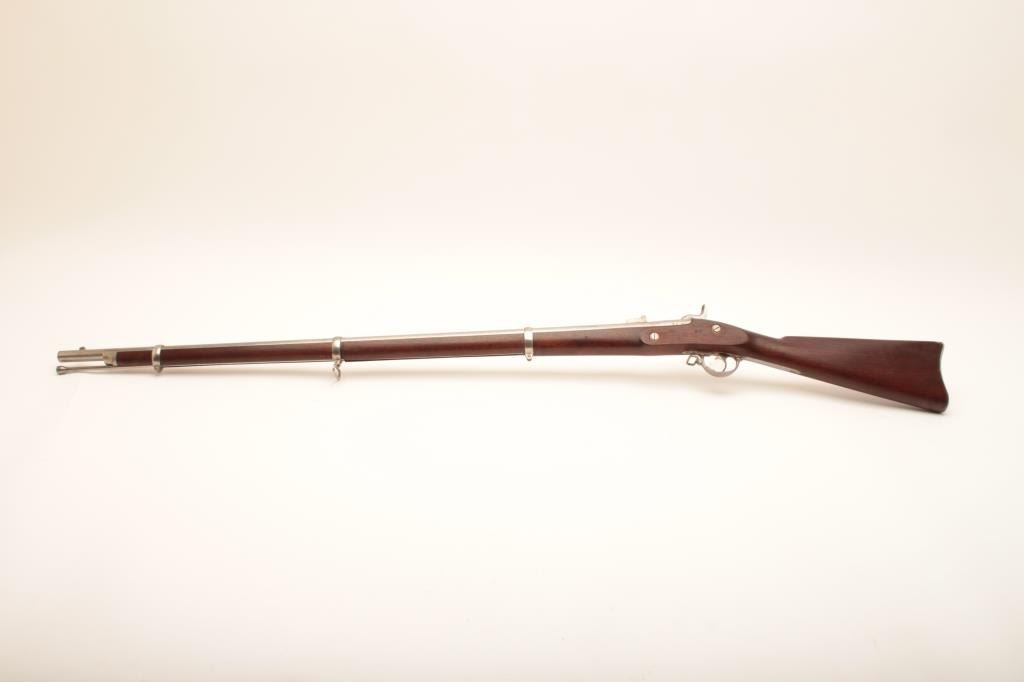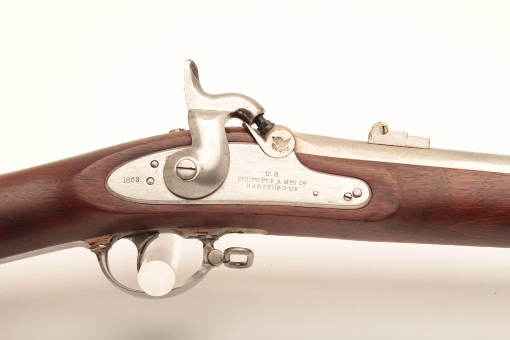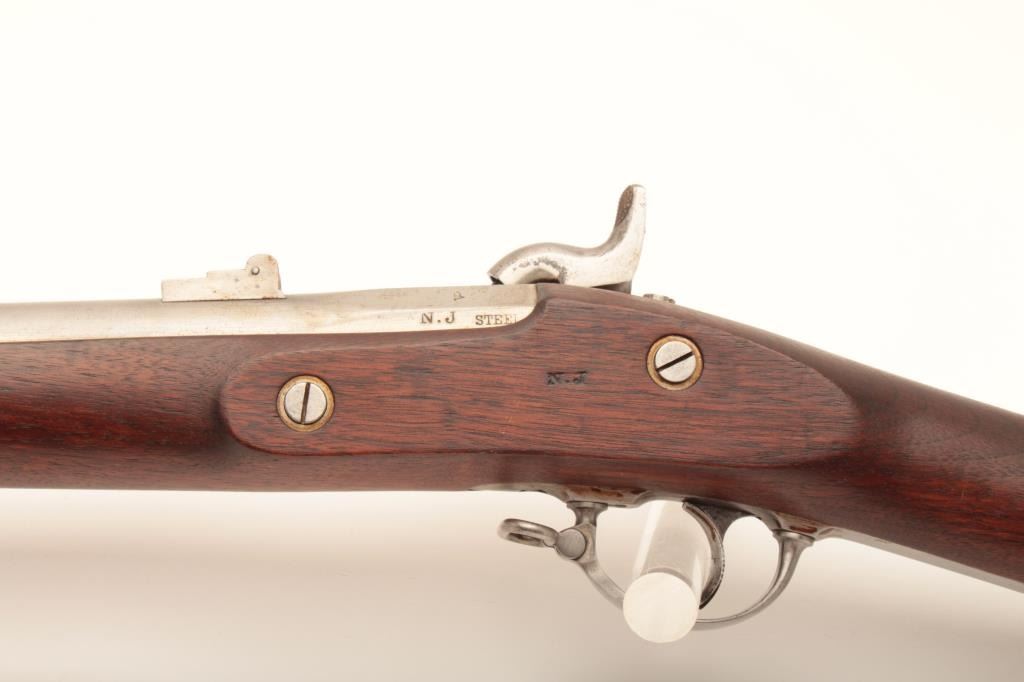 U.S. Colt Model 1861 percussion Special Musket, dated 1863 on lockplate and 1862 on breech of 40” barrel, .58 caliber, “in the white” finish, wood stock; overall very good to near fine condition with N.J. (New Jersey) stampings on left side of barrel at breech and on the left side of the stock above the trigger guard; crisp action, very good bore, sharp markings and near fine stock. (Antique). Est.: $1,500-$3,000.