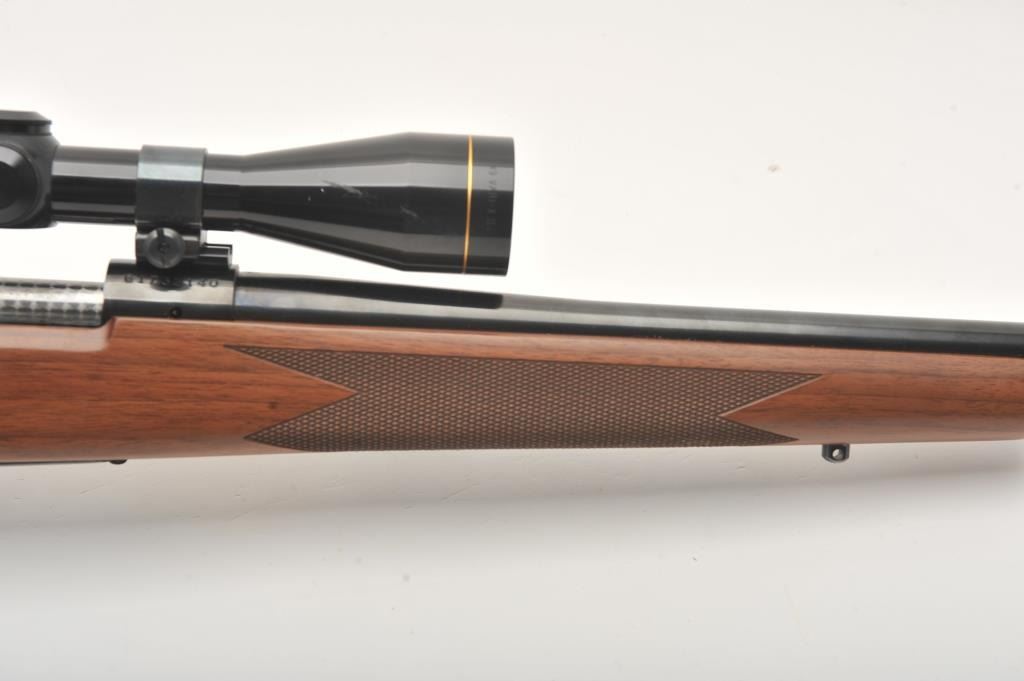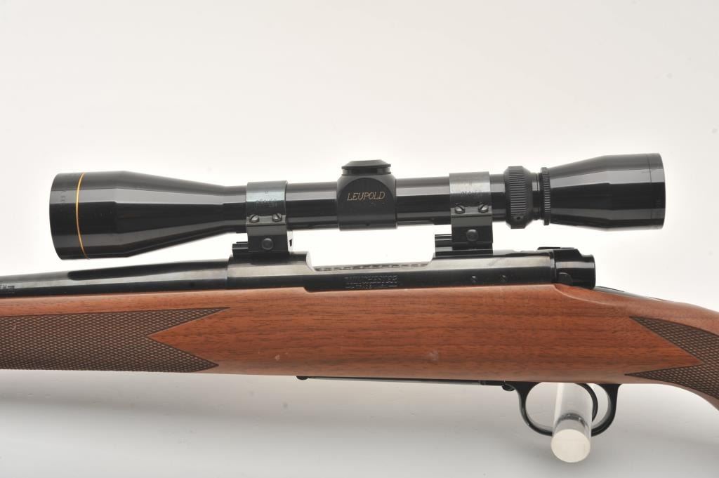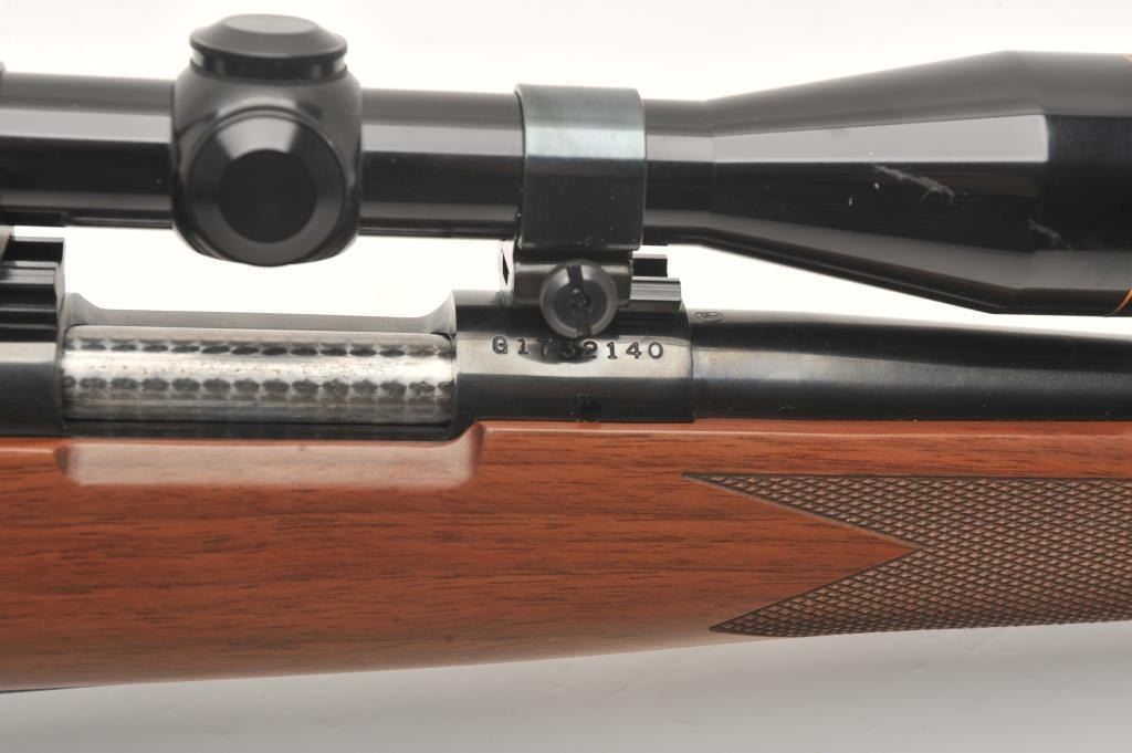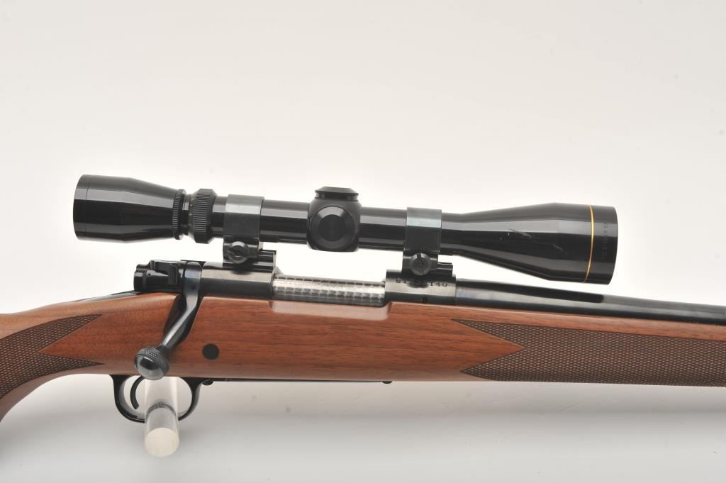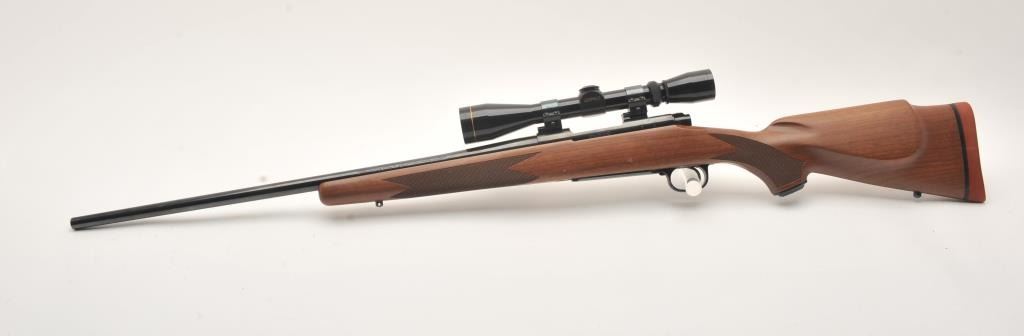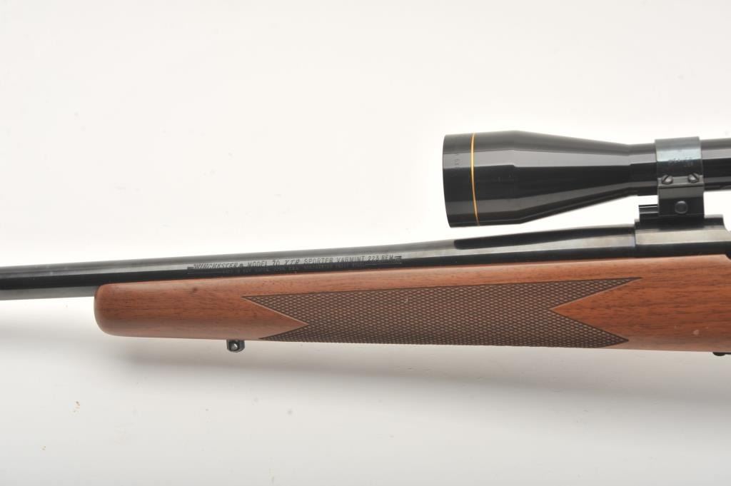 Winchester Model 70 XTR bolt action rifle, .223 REM. caliber, 24” barrel, blued finish, checkered wood stock, S/N G1732140; mounted with a Leupold 3x9 scope with good optics; gun is in overall very good + condition displaying majority of blued finish, bore needs cleaning, action and markings are crisp, wood is near fine. (Modern). Est.: $500-$1,000.