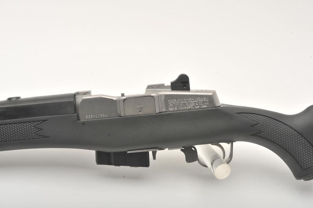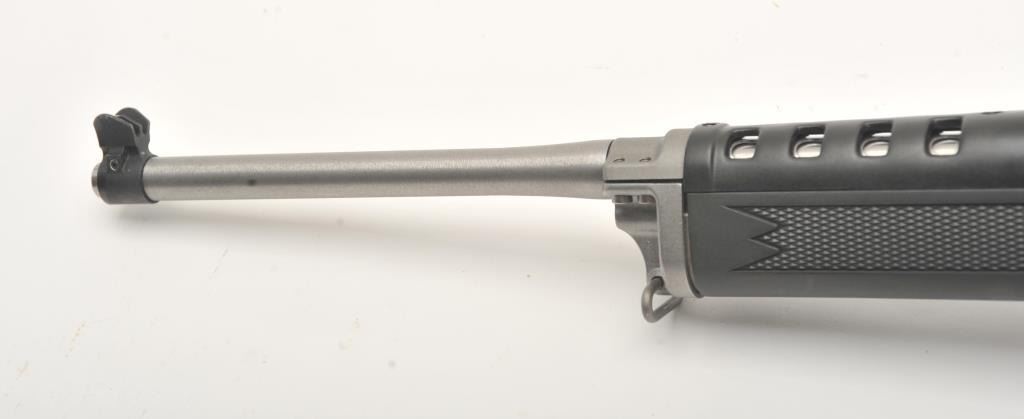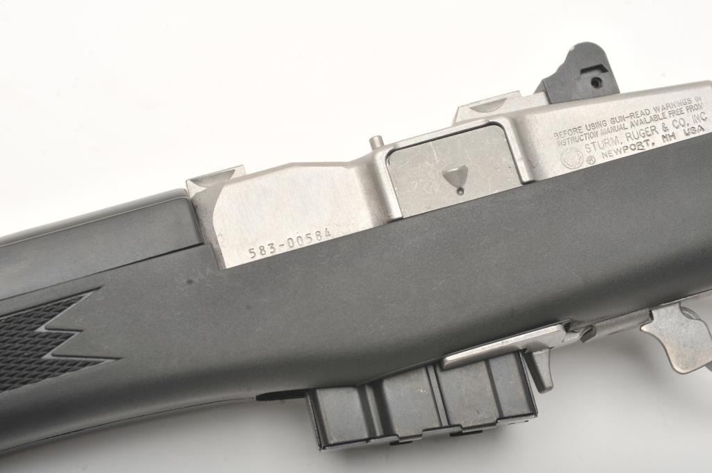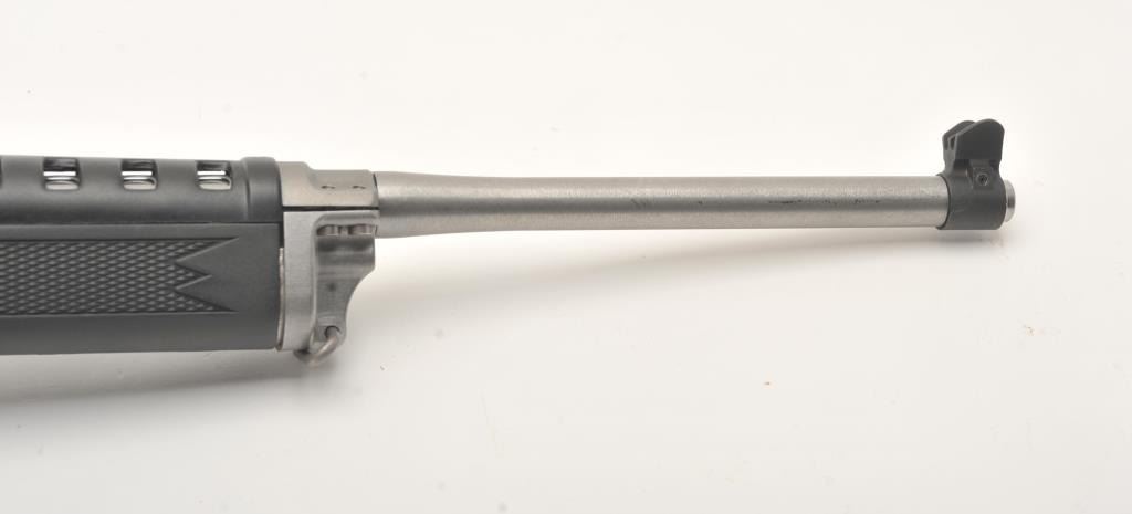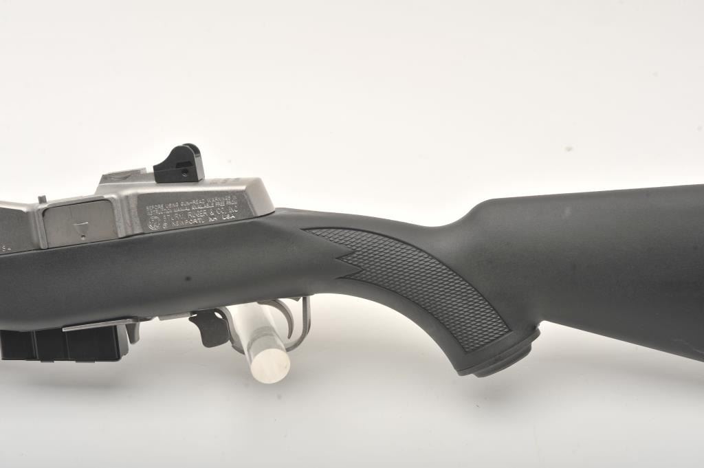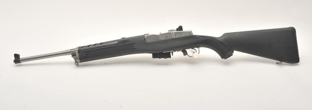 Ruger Ranch Rifle Model semi-automatic rifle, 5.56 NATO caliber, 18.5” barrel, stainless steel, checkered synthetic stock, S/N 583-00584; near new condition. (Modern). Est.: $400-$800.