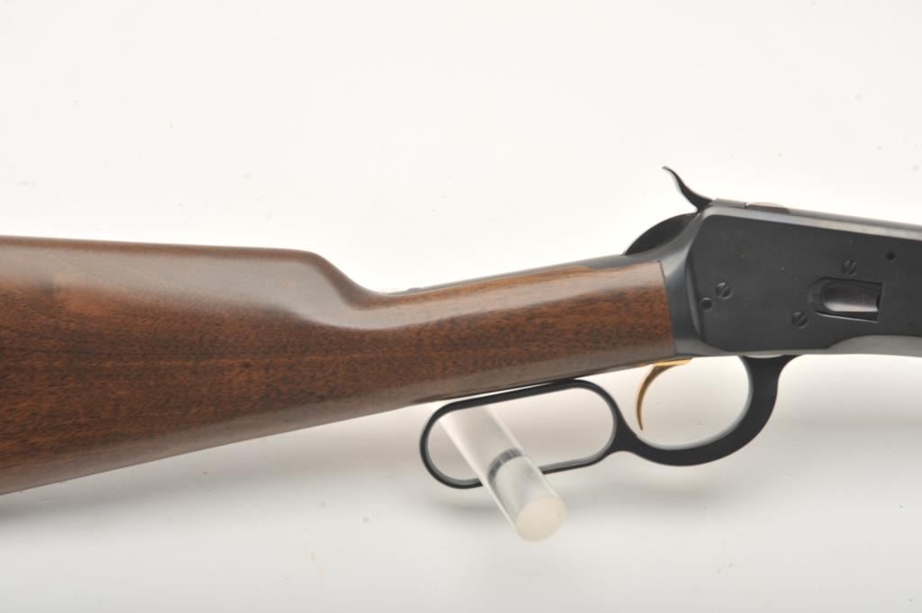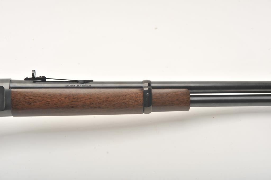 Browning Model 92 lever action carbine, .357 Magnum caliber, 20” barrel, blued finish, wood stocks, gold trigger, S/N 08042PY167; overall near new condition. (Modern). Est.: $250-$500.