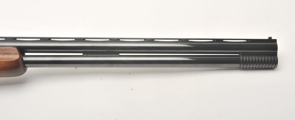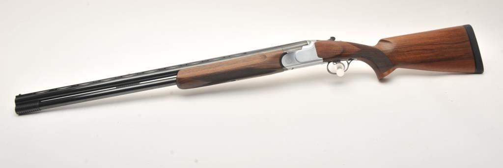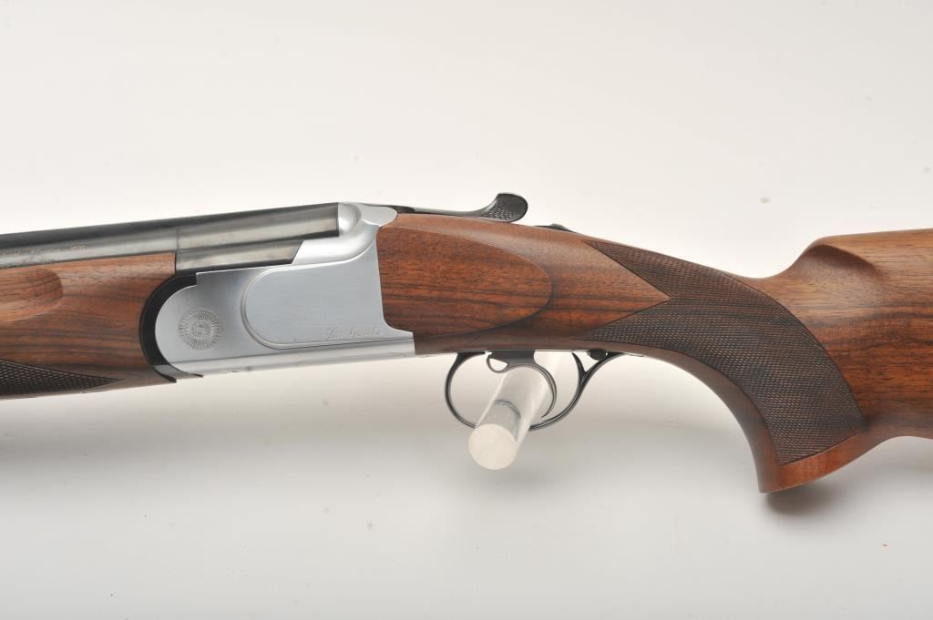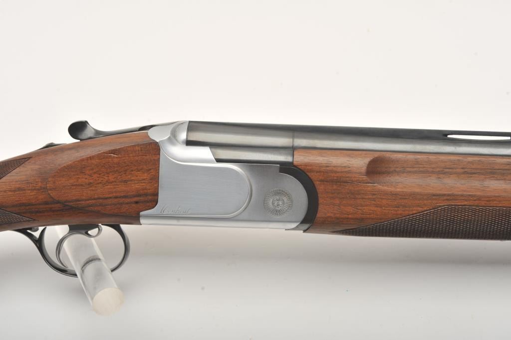 Armi O/U Montreal Model shotgun by Gamba, 12 gauge, 29” ventilated rib barrels, blued finish, single trigger, auto ejectors, bright receiver, checkered wood stock with hard rubber butt pad, S/N 77593; overall fine condition with majority of original blued finish remaining on barrels, bores, bores should clean to fine, crisp action, sharp markings, fine wood stocks. (Modern). Est.: $350-$700.