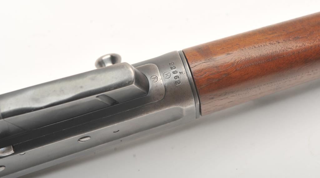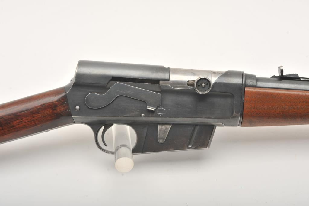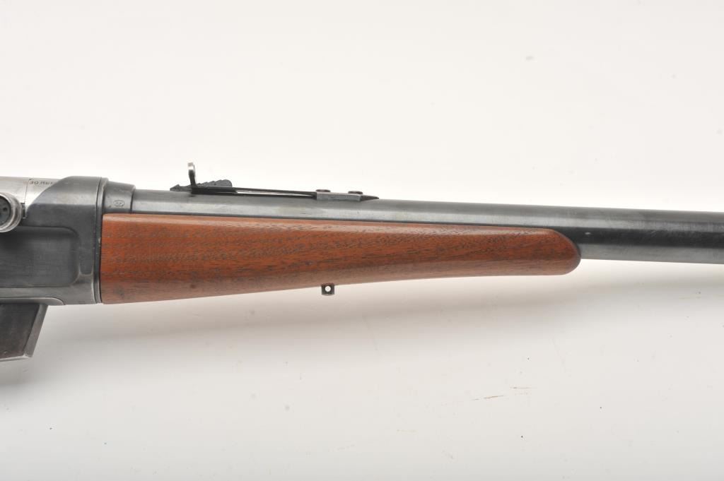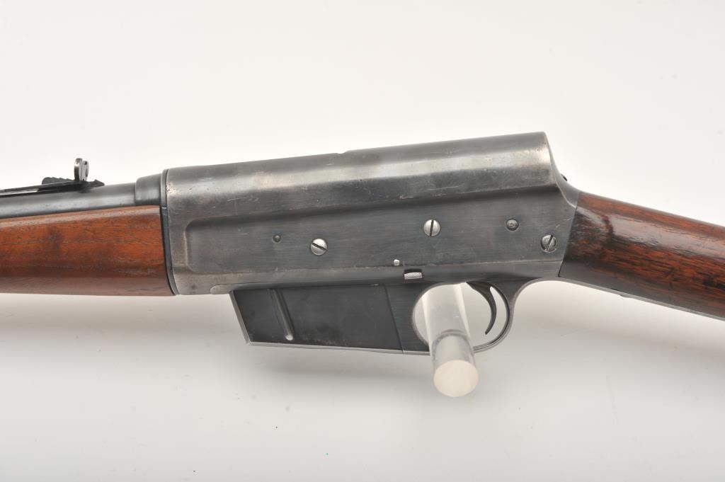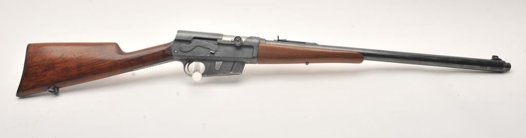 Remington Model 8 magazine-fed semi-automatic rifle, .30 Rem. caliber, 22” barrel, blued finish, wood stocks, S/N 22962; overall good condition with considerable blued finish remaining, good bore, crisp action, sharp barrel address marking, no markings on receiver, good wood stocks with scattered mars and scratches from carry and storage. (C&R/PPT). Est.: $350-$700.