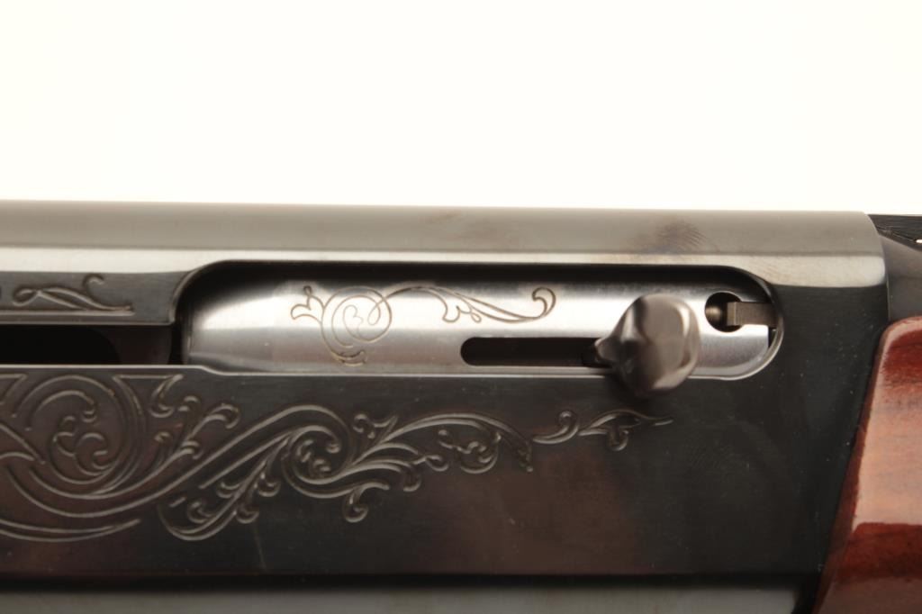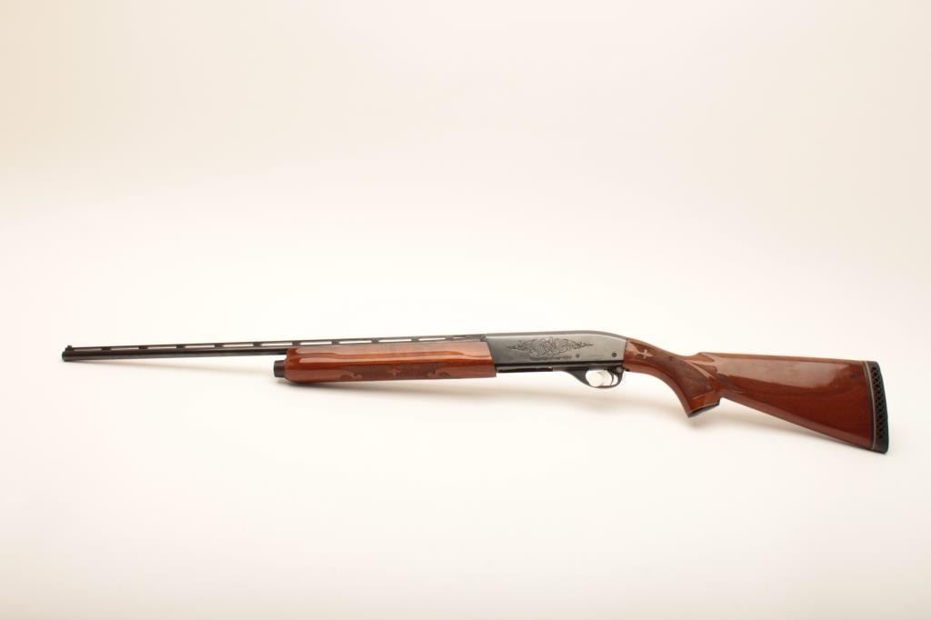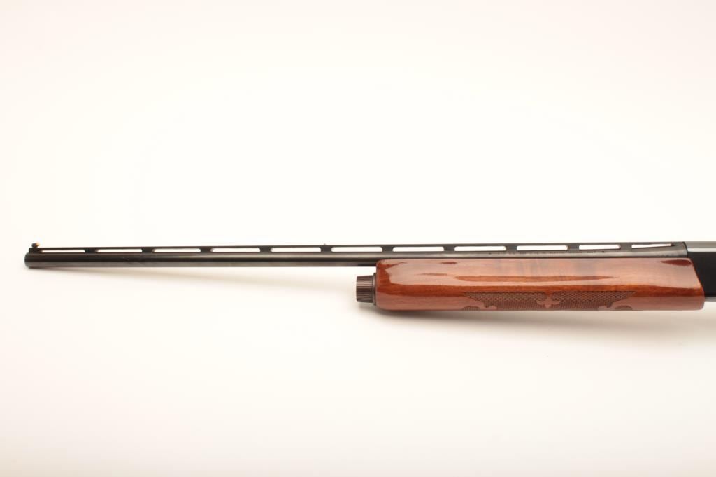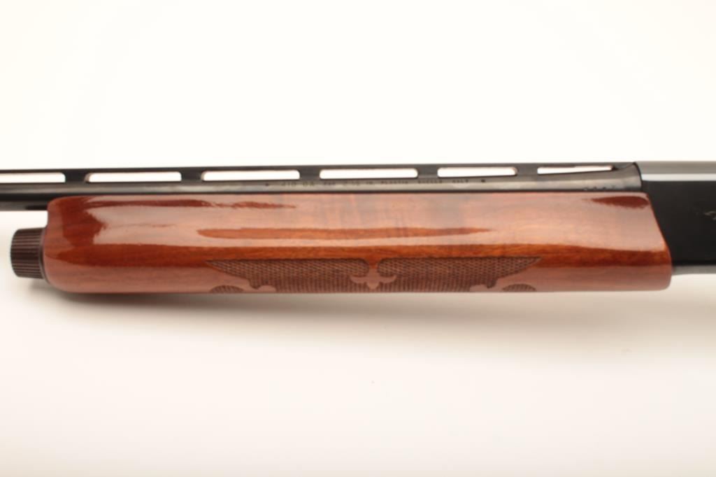 Remington 1100, #L236544H, 410 Ga., chambered for 2 1/2" plastic shells, 25" vent rib barrel, blued finish, with checkered walnut stock, with rubber recoil pad. Shotgun is in near fine condition overall, retaining 95-97% plus original finish, thinning at the muzzle, bore is very good, action is very good. Stocks are very good plus, showing minimal handling marks, 13 3/4" to the end of the wood, 14 3/4" LOP. (Modern) Est. $500-1000