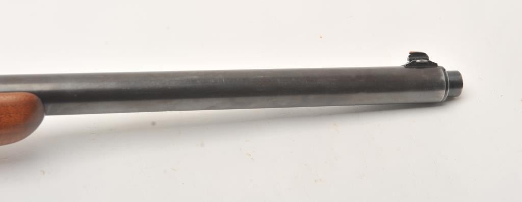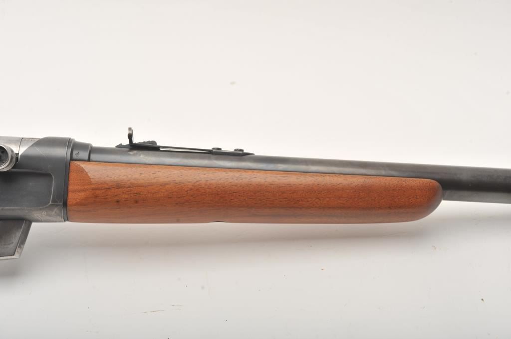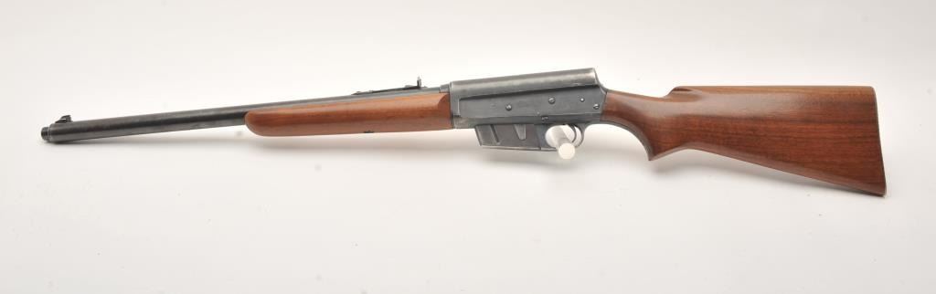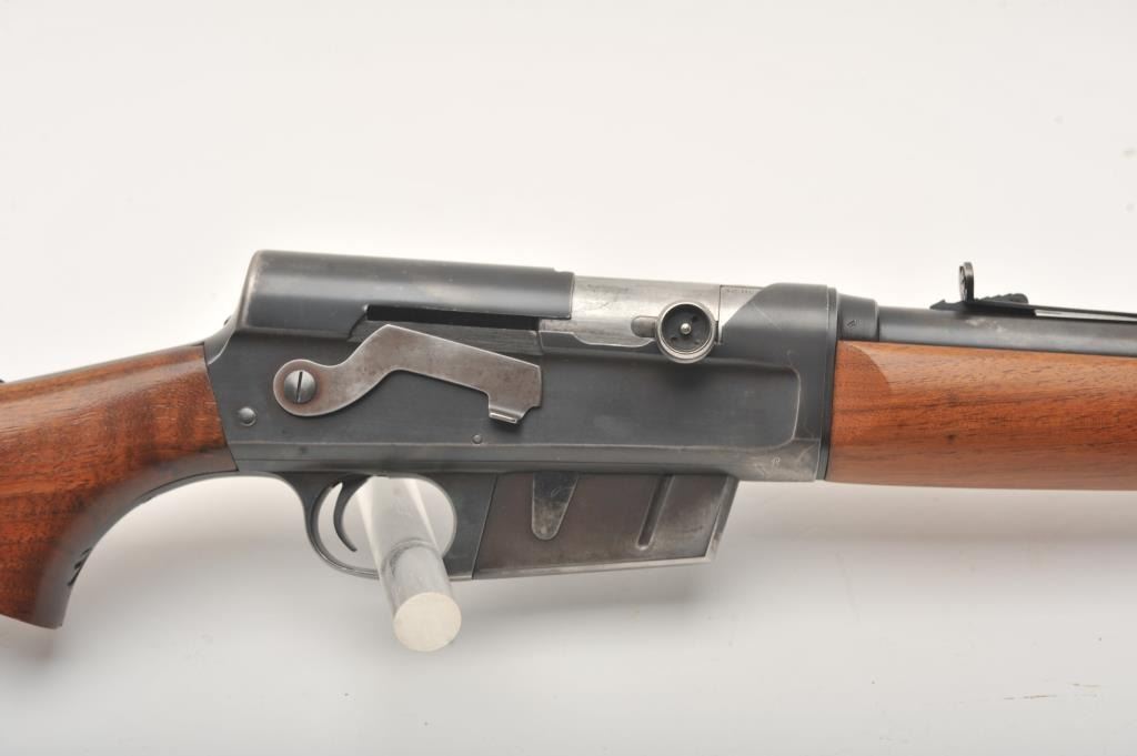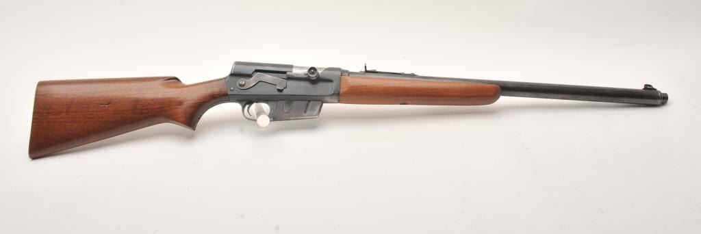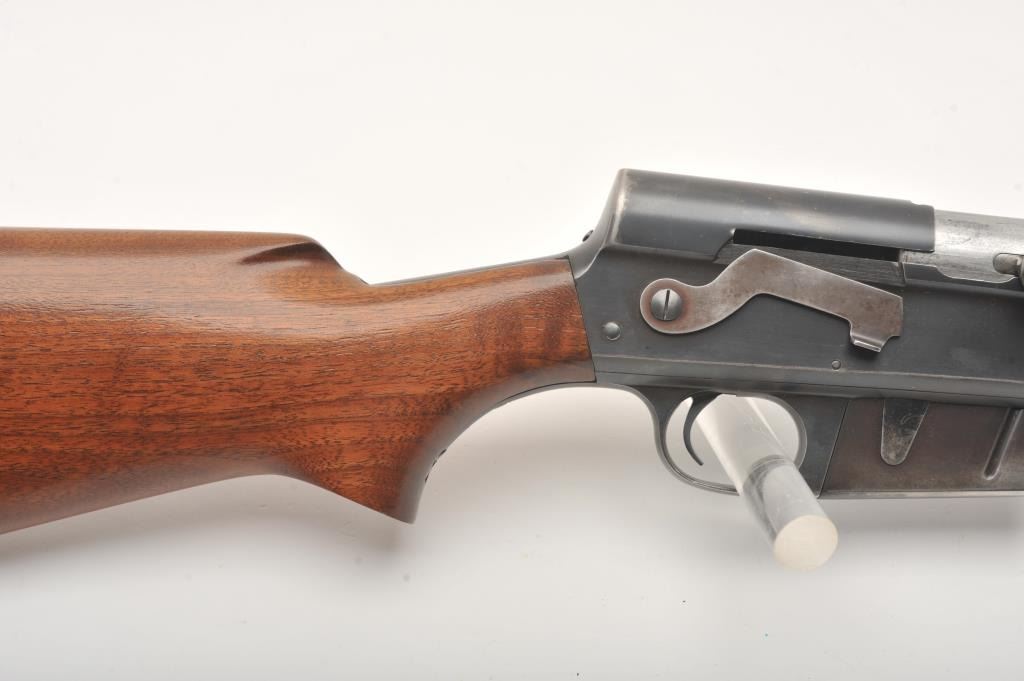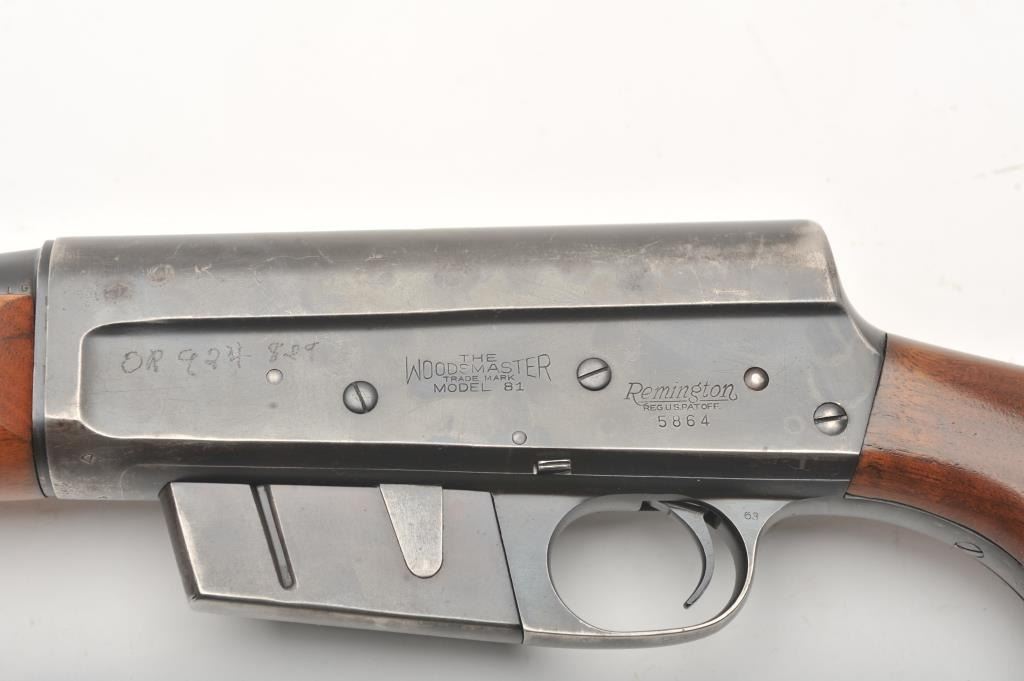 Remington Model 81 Woodmaster magazine-fed semi-automatic rifle, .32 Rem. caliber, 23” barrel, blued finish, wood stocks, S/N 5864; overall good condition with considerable original blued finish remaining, license # scratched into receiver on left side, good bore, crisp action, good markings and very good wood stocks; rare in .32 Rem. caliber for this model. (C&R/PPT). Est.: $350-$700.
