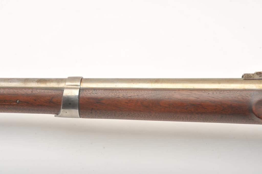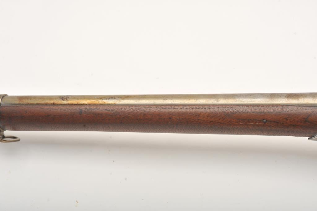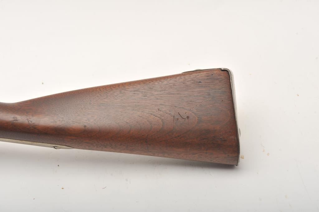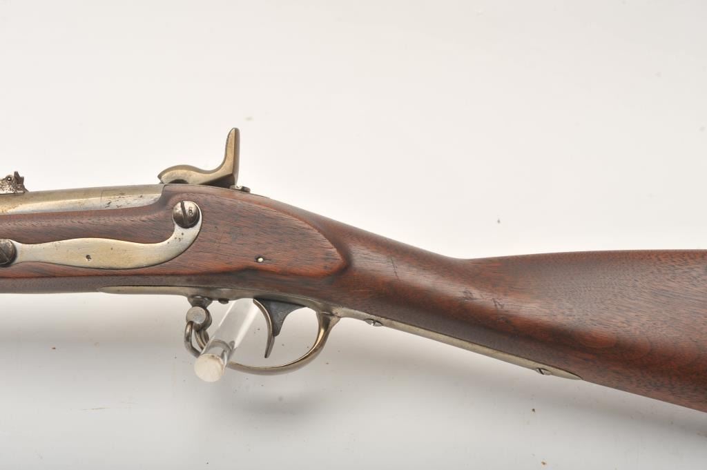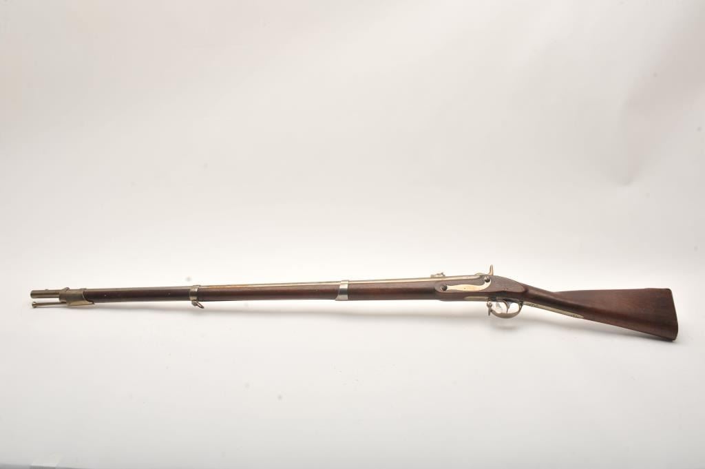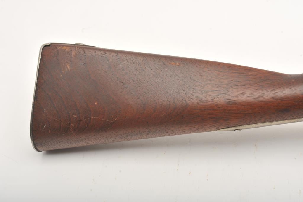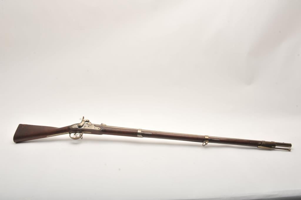 Harpers Ferry Musket converted to percussion with sight added and bayonet lug dated 1862 at breech. H & P marked on bolster with 42” .69 caliber smoothbore barrel. Good overall uncleaned and as found condition no appreciable losses along ramrod channel with very good wood. Ramrod retained. The action is crisp. Would clean well as in storage for decades in Dr. Cairns collection. (Antique) Est.: $600-$1200