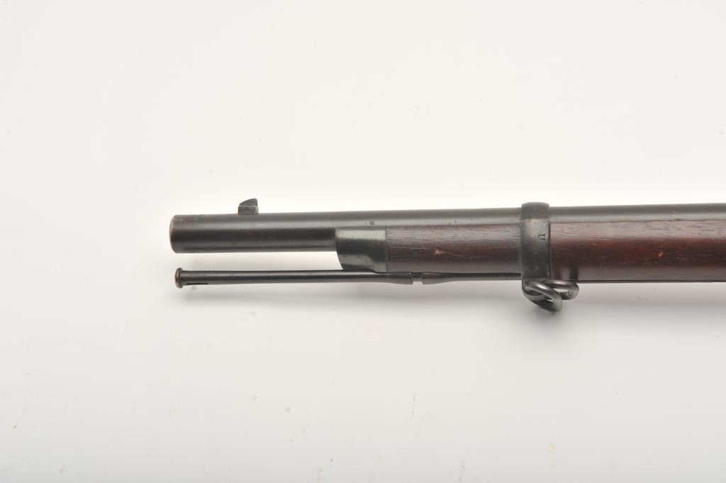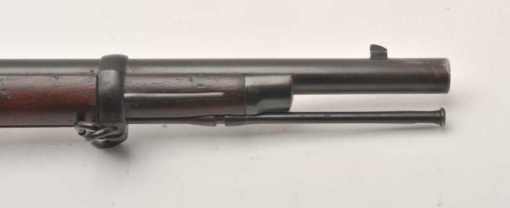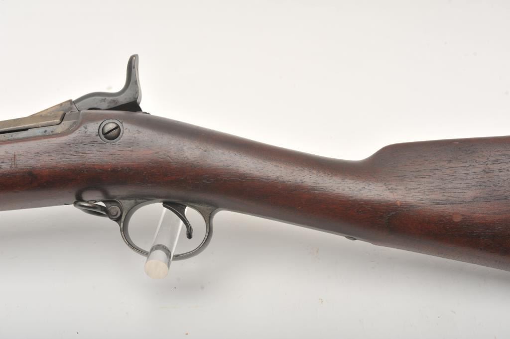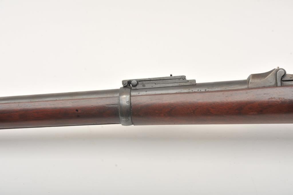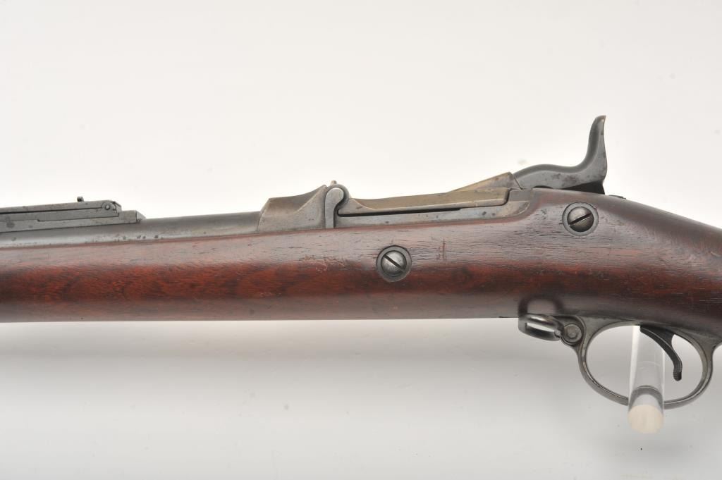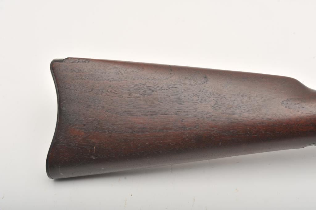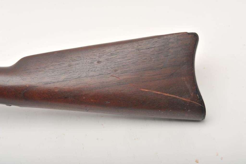 Springfield Model 1884 Cadet rifle with 29 ½” barrel in .45-70 caliber, S/N 493859. Good to very good uncleaned condition showing coating of dirt and grease. The stock is good to very good with no cartouche showing and some scratches and dings. The bore is dark but will clean. Most original blue shows under grime. From Dr. Cairns collection in storage for decades. (Antique) Est.: $350-$700