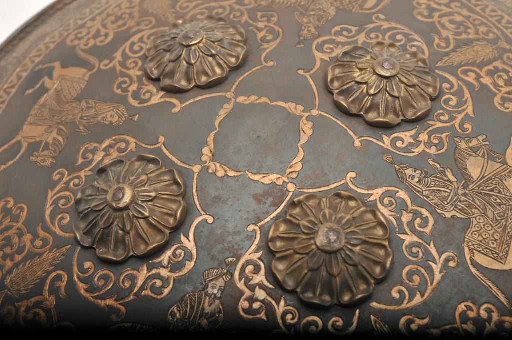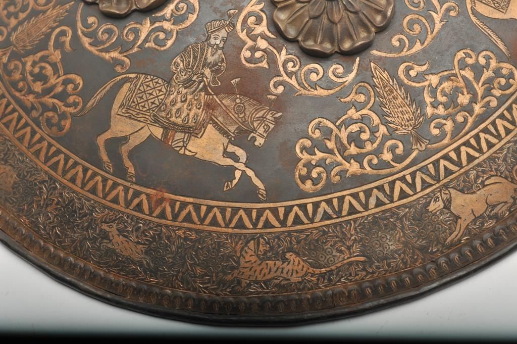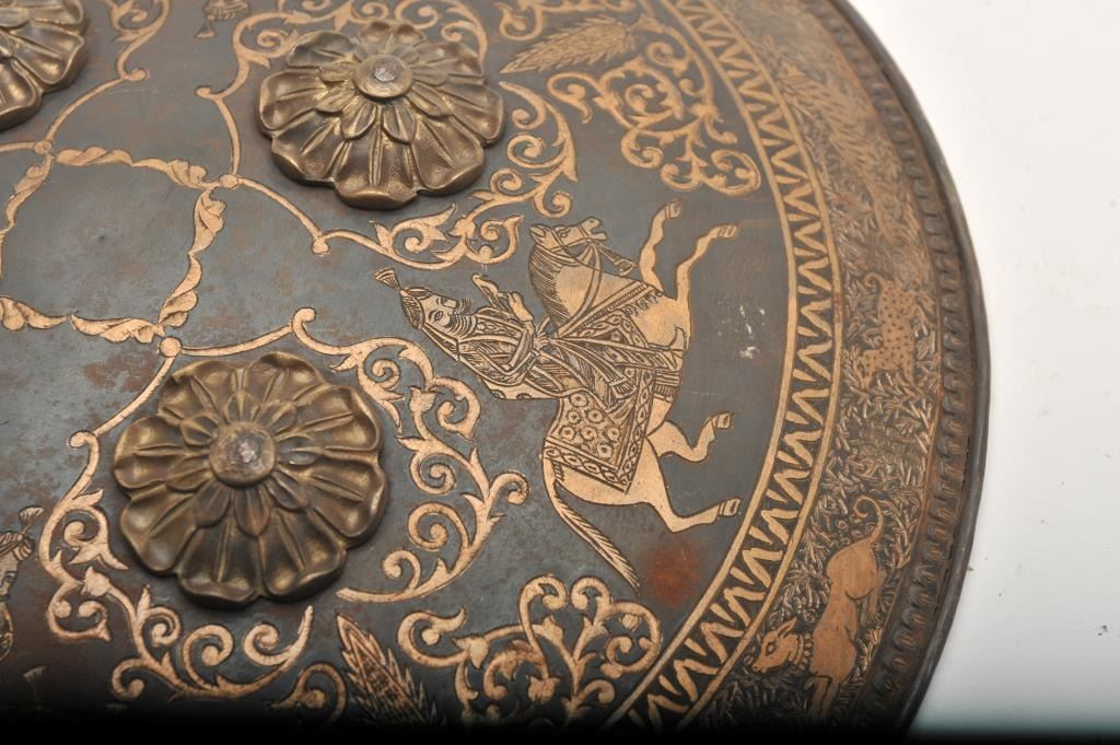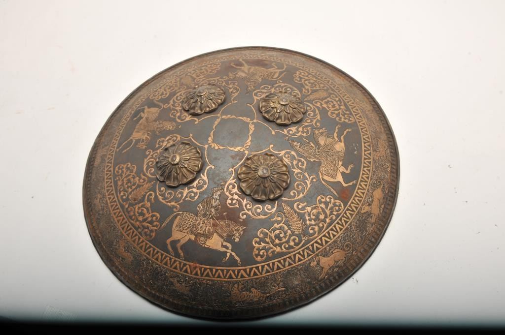 19th to 20th Century fancy decorated parade Indo Persian shield. Measures 18” across center. Good condition and “Showy”. Est.: $350-$700