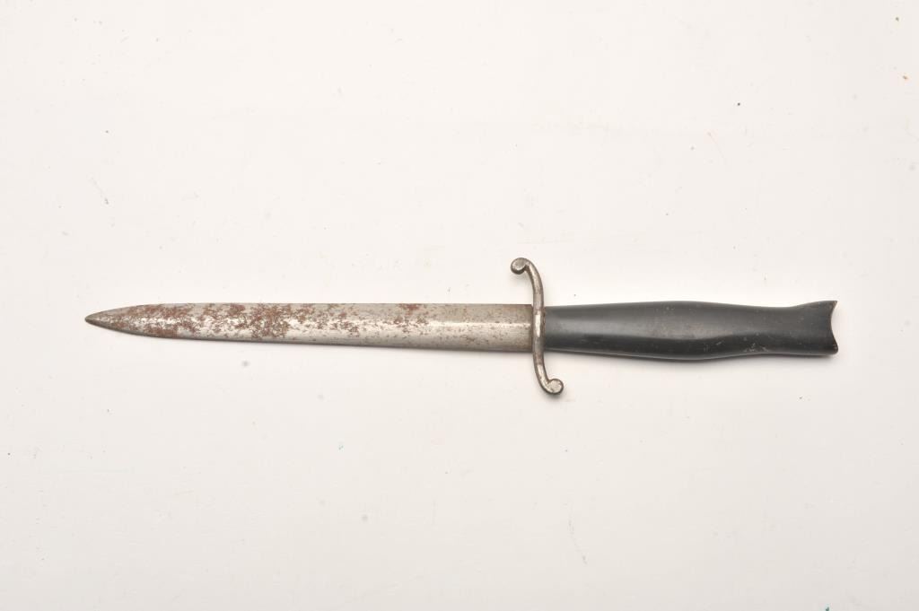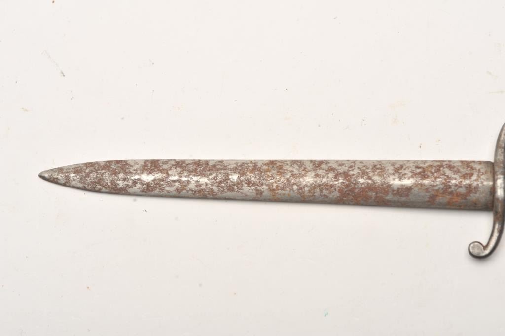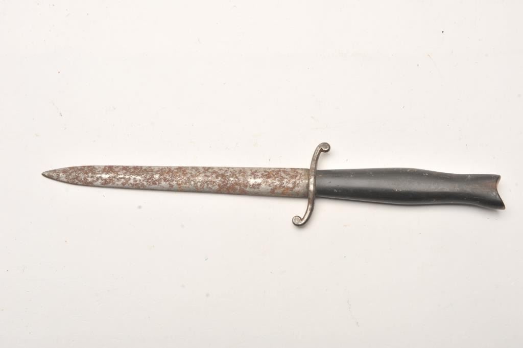 19th century European dagger with horn grip and āSā shaped guard. Measure 13ā overall. Blade shows some rust and pitting. Est.: $75-$150