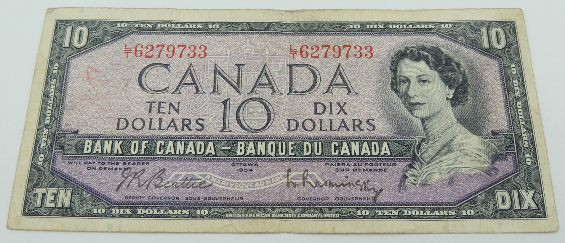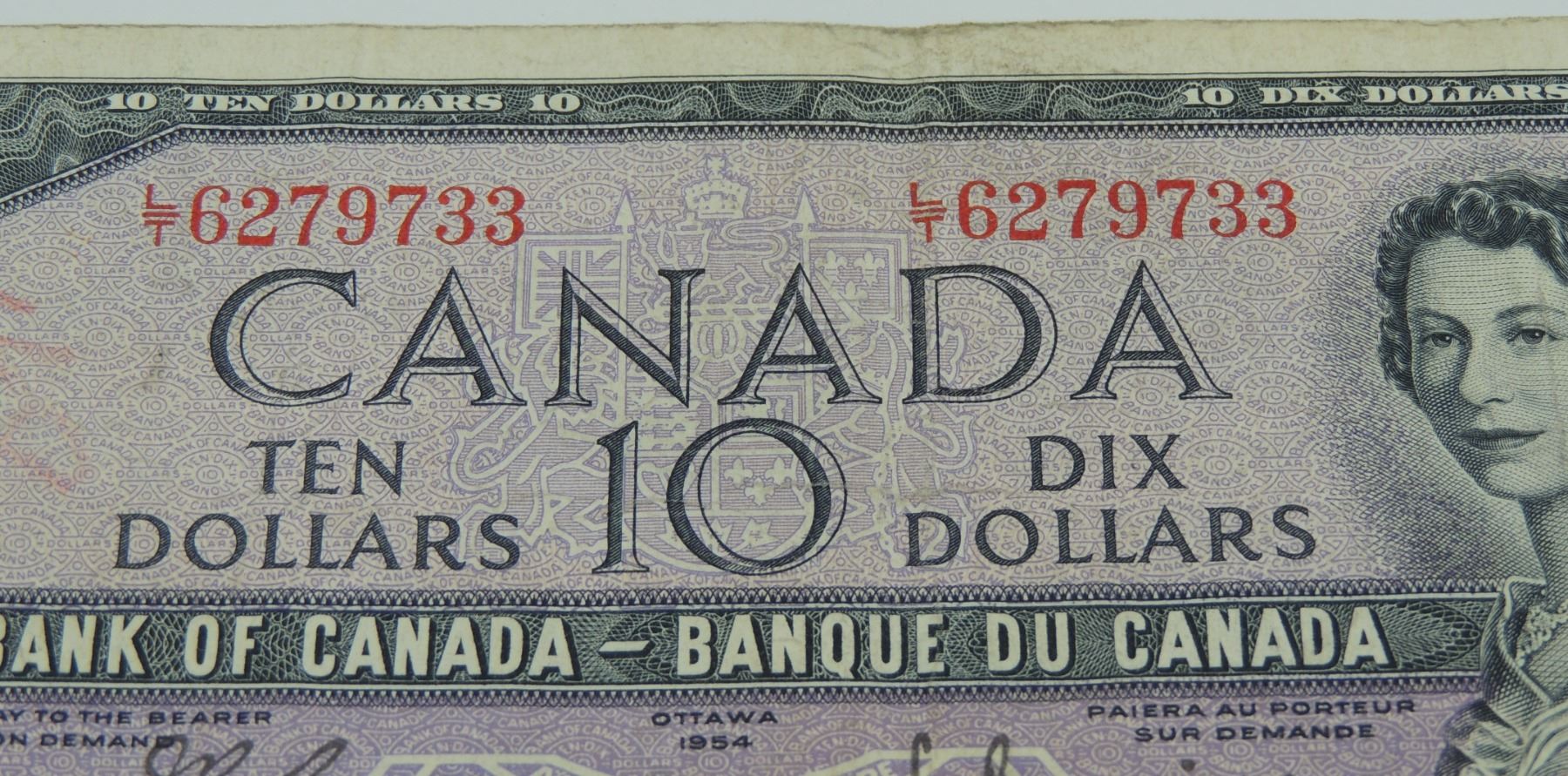 #19C 1954 CANADA $10 TEN DOLLAR BILL QE II