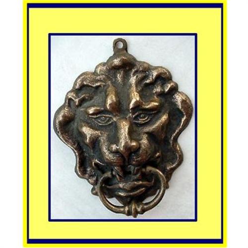 19th century, bronze English door knocker in the shape of a lion's head. 7inches top to botton & extremely heavy. detail to facial features and artistic design of mane -almost like a sunburst around his head. Sturdy ring to knock on his chin. Good condition.