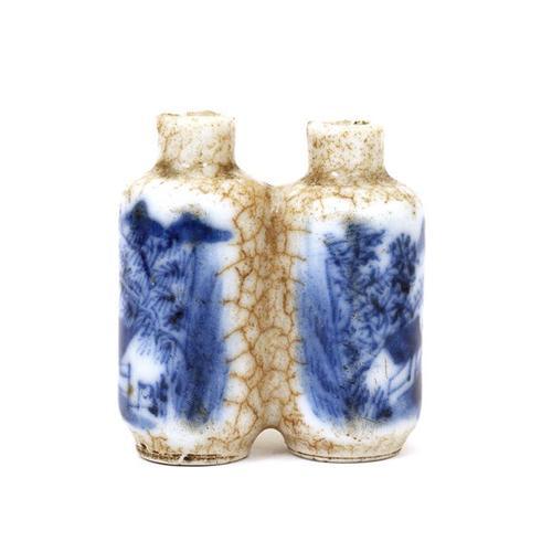 19th Century Chinese Crackle Blue & White Double Snuff Bottle