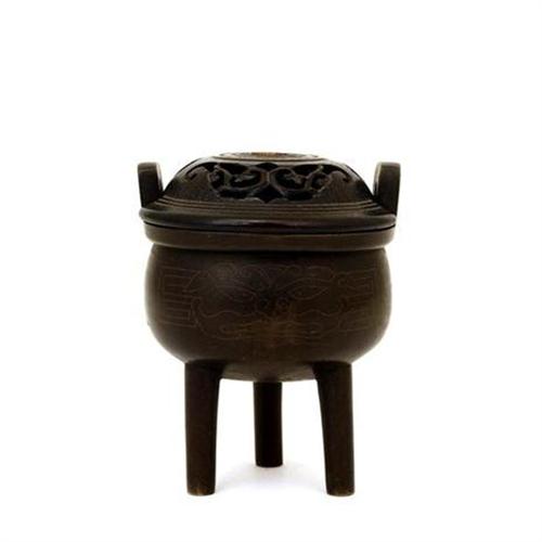 <tr><td>Title:19C Chinese Bronze Censer w Silver Wire</td></tr>