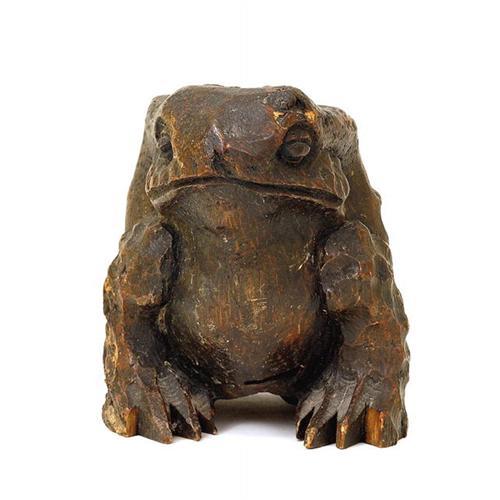 19th Century Chinese Export Bamboo Carved Toad Signed with Original Lable