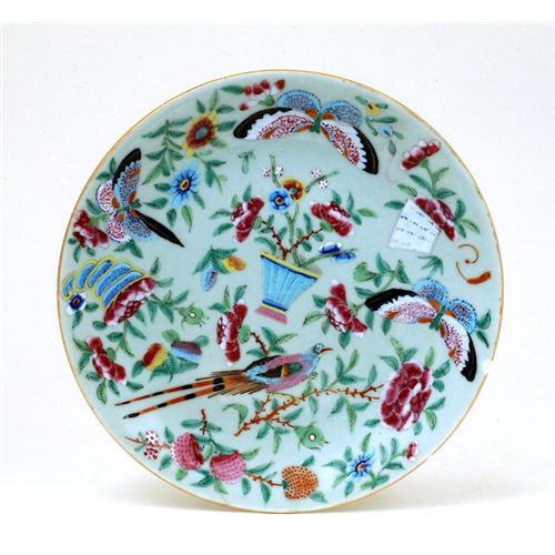 Late 19th Century or Early 20th Century Chinese Export Celadon Rose Medallion Plate