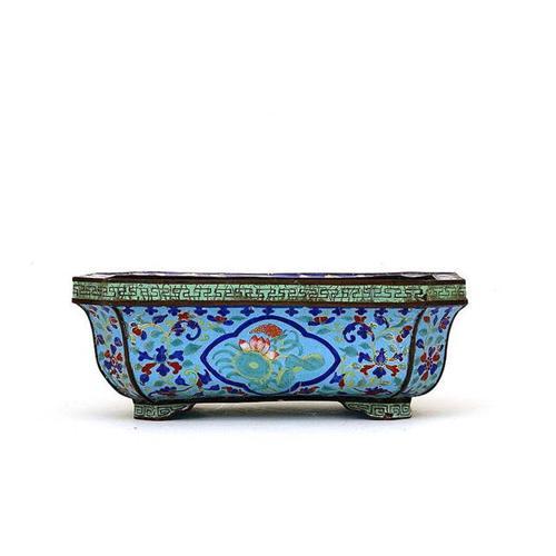 19th Century Chinese Export Enamel Cloisonne Planter <p> It is 3.25 inches tall, and 5.25 inches by 8.25 inches wide. </p><p> It is in good condition with no repairs, except with chip at the foot and at the side (as seen in the photos). </p>