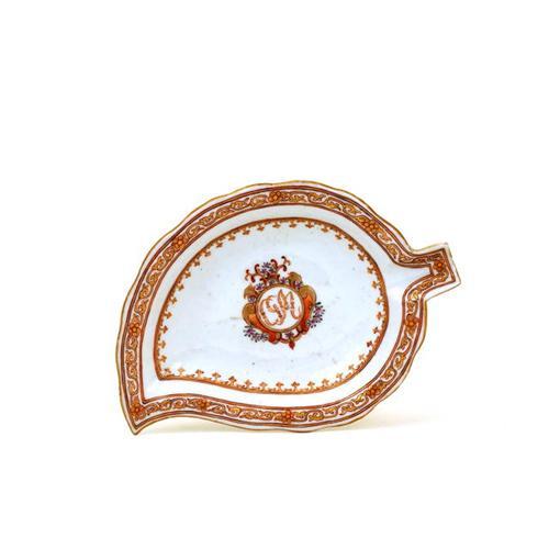 <p>19th Century Chinese Export Famille Rose Armorial Spoon Leaf Shape Dish </p>