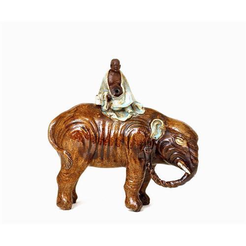 19th Century Chinese Export Mudman Sancai Style Monk Riding Elephant