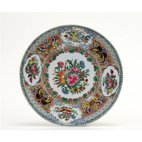 19th Century Chinese Export Rose Medallion Butterfly Plate