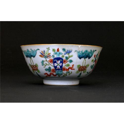 <table width="100%" border="0" cellspacing="0" cellpadding="4"><tr><td><em> </em></td></tr><tr> <td width="100%"> 19th Century Chinese Famille Rose Bowl with Lotus Mark