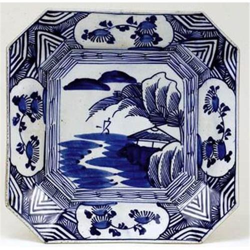 <tr><td>Title:19C Japanese Blue & White Imari Oct Plate</td></tr>