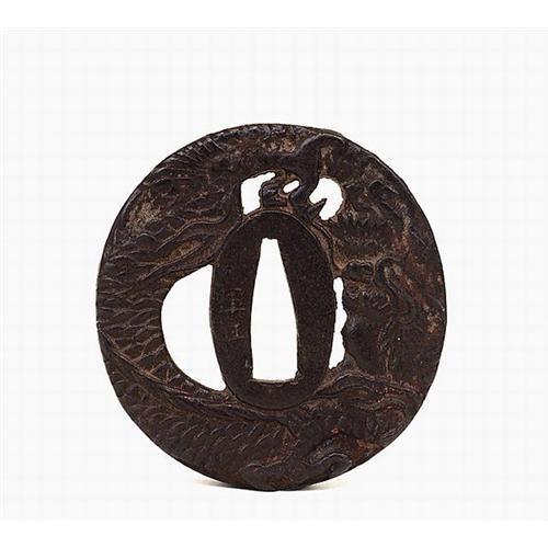 19th Century Japanese Dragon Iron Tsuba Sword Guard