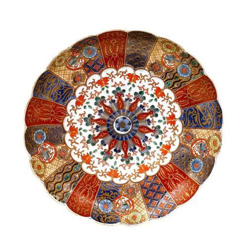 <table width="100%" border="0" cellspacing="0" cellpadding="4"><tr><td><em> </em></td></tr><tr> <td width="100%"> <p>19th Century Japanese Imari Charger Tapestry Chrysanthemum Petals Shape </p><p>
