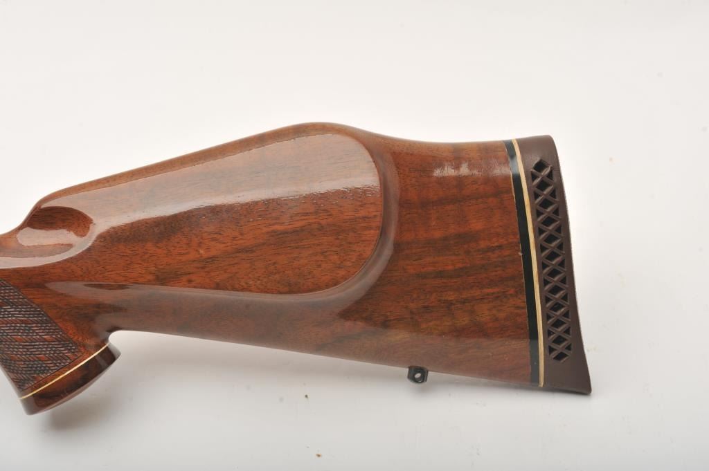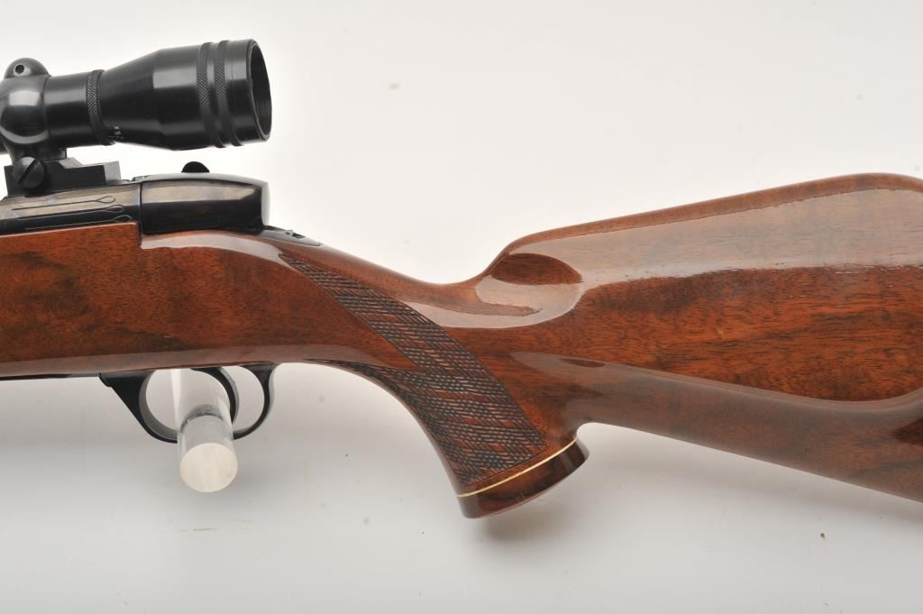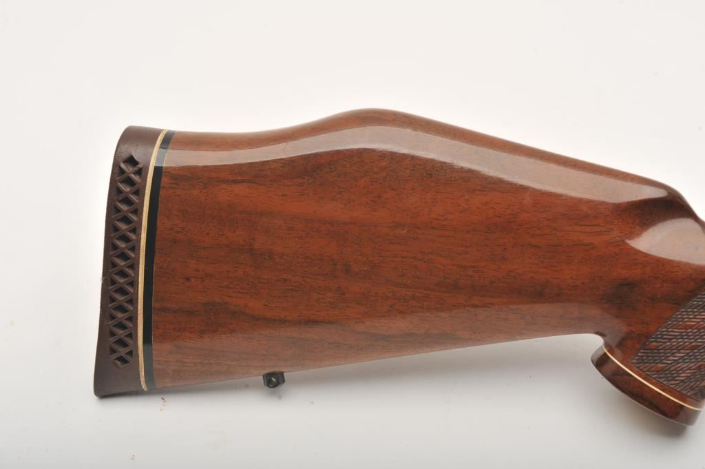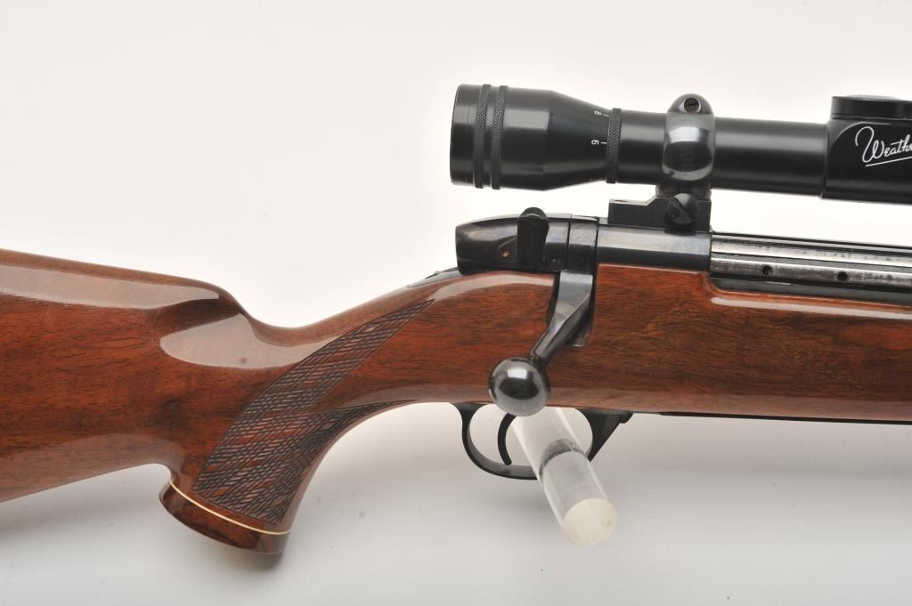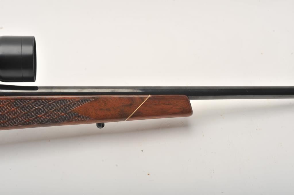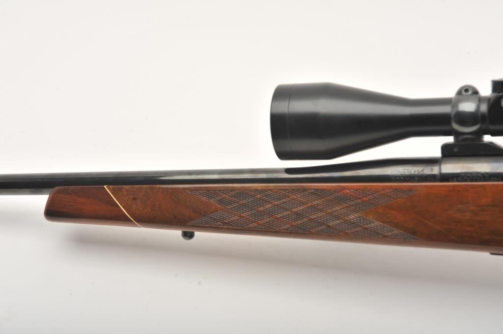 Weatherby Mark V, #P14029, .300 Wby Mag cal., blued finish, checkered walnut stock with Weatherby variable 2 3/4-10x scope. Rifle is in near fine condition overall, retaining approximately 95-97% original finish, very good bore, stock is very good with some light checking of the varnish, recoil pad is hard. Scope is good with good optics. Made in W. Germany. (Modern/PPT) Est. $800-1600