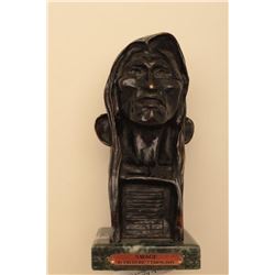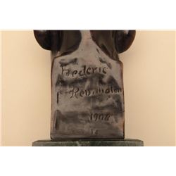 Recast bronze on marble base of an Indian entitled “Savage by Frederic Remington; approximately 11... Show more..