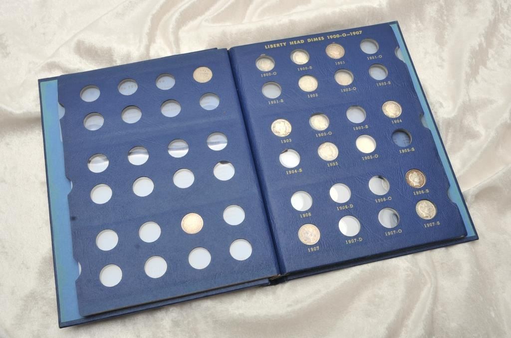 One lot of 20 silver liberty dimes from 1892-1918 arranged in a whitman coin album. Est:$40-80