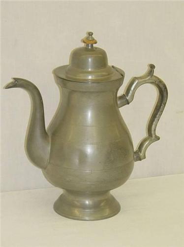 19TH CENT. 12" AMERICAN PEWTER COFFEE POT SIGNED A. PORTER - SOME SMALL DENTS and WEAR;
