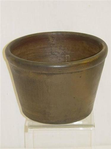19TH CENT. 9" OPEN BROWN GLAZED REDWARE COOKING CROCK W/ 1" RIM FOR PUDDINGS;