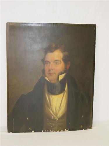 19TH CENT. AMERICAN SCHOOL OIL PAINTING ON WOODEN PANEL PORTRAIT YOUNG GENTLEMAN (29 1/2" X 24 1/2") - MINOR LOSSES TO PAINT MOSTLY ON BOTTOM EDGE