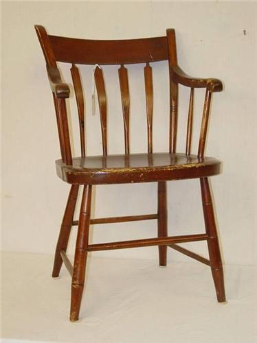 19TH CENT. ARROW BACK WINDSOR ARM CHAIR IN A NATURAL FINISH - WEAR & IMPERFECTIONS;