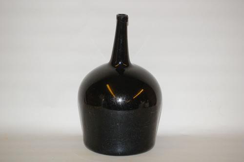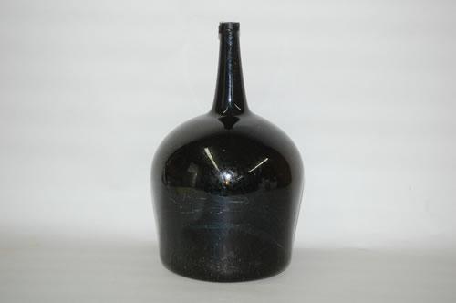 19TH CENT. BLOWN GLASS DEMIJOHN BOTTLE - 16 1/2" ENGLISH DEEP OLIVE GREEN BLOWN GLASS DEMIJOHN BOTTLE W/ APPLIED SHEARED TOP & SMOOTH BOTTOM (16 1/2" T X 10" W) - WEAR, SCRATCHES, IMPERFECTIONS