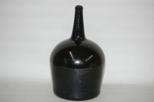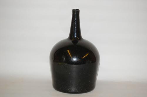19TH CENT. BLOWN GLASS DEMIJOHN BOTTLE - 16 1/2" ENGLISH DEEP OLIVE GREEN BLOWN GLASS DEMIJOHN BOTTLE W/ APPLIED SHEARED TOP & SMOOTH BOTTOM (16 1/2" T X 10" W) - WEAR, SCRATCHES, IMPERFECTIONS