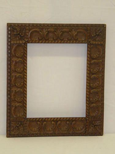 19TH CENT. CARVED OAK FRAME (17" X 15"-TOTAL MEASUREMENT, 11 5/8" X 9 5/8" SIGHT SIZE) - WEAR & IMPERFECTIONS